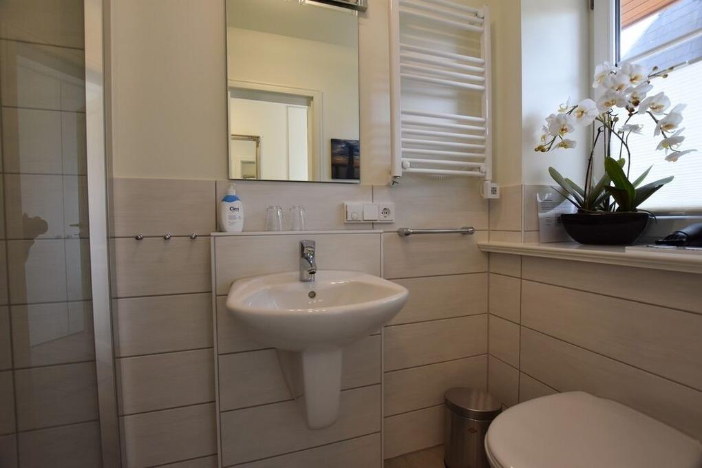 Im OG finden Sie 2 Schlafzimmer mit Doppelbetten und ein zweites Duschbad. Im Spitzboden befindet sich ein weiterer Raum mit einer zusätzlichen Schlafmöglichkeit.
