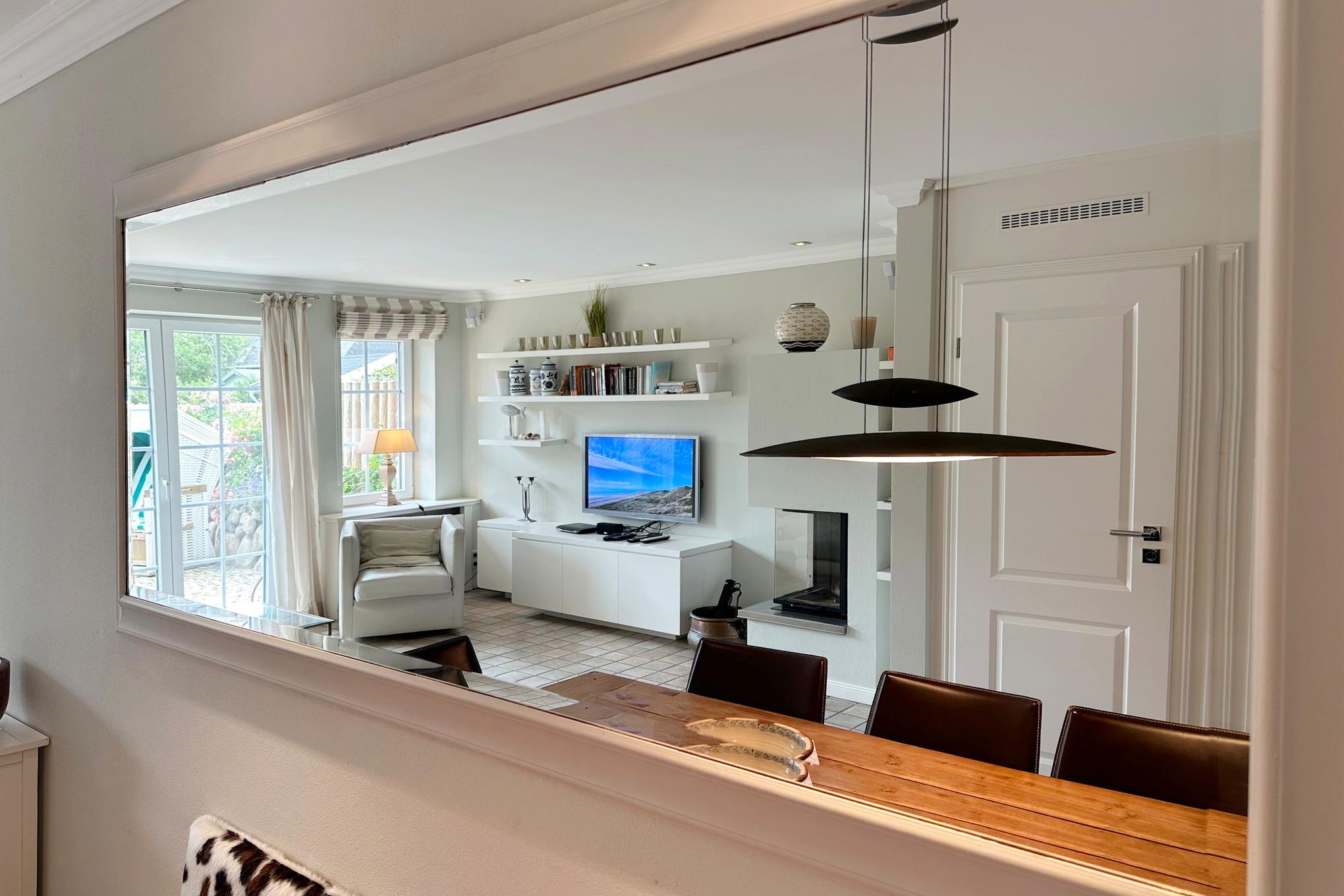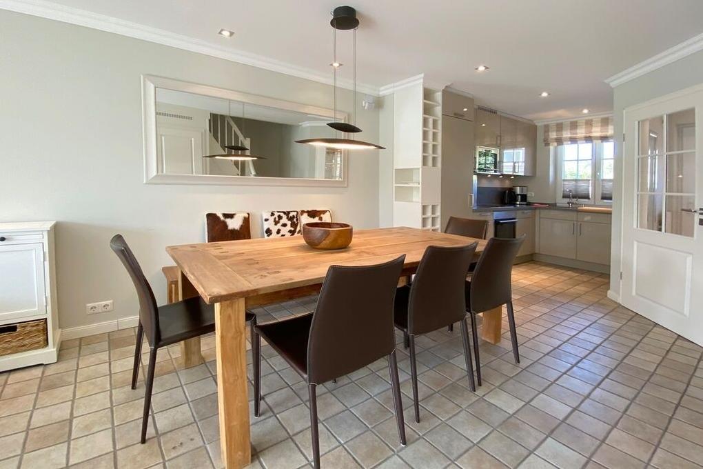 Exklusive eingerichtetes Luxus-Hausscheibe mit vielen geschmackvollen Details, die das positive Gesamtbild dieser schönen Immobilie abrunden. Der Wohn-Essbereich mit offener Küche und anschließender Süd-Terrasse vereint hochwertige Tischlereinbauten, modernes Design und auch natürlich-rustikale Elemente. Auch die technische Ausstattung bietet einiges: Bose Soundsystem, Flachbildfernseher mit Magenta-TV, Blue Ray-Player, kostenloses W-Lan und Telefon ( in das deutsche Festnetz ). Der Kamin trägt gerade in der kalten Jahreszeit zur Gemütlichkeit bei. im EG befindet sich auch das zweite Bad mit Dusche und WC. Im OG befindet sich das große Schlafzimmer mit Doppelbett und ein Schlafzimmer mit 2 Einzelbetten und Einbaumöbeln. Im modernen Bad haben Sie 2 Waschbecken und eine Wanne mit Duschmöglichkeit. Im Spitzboden stehen Ihnen zwei weitere Schlafmöglichkeiten zur Verfügung.