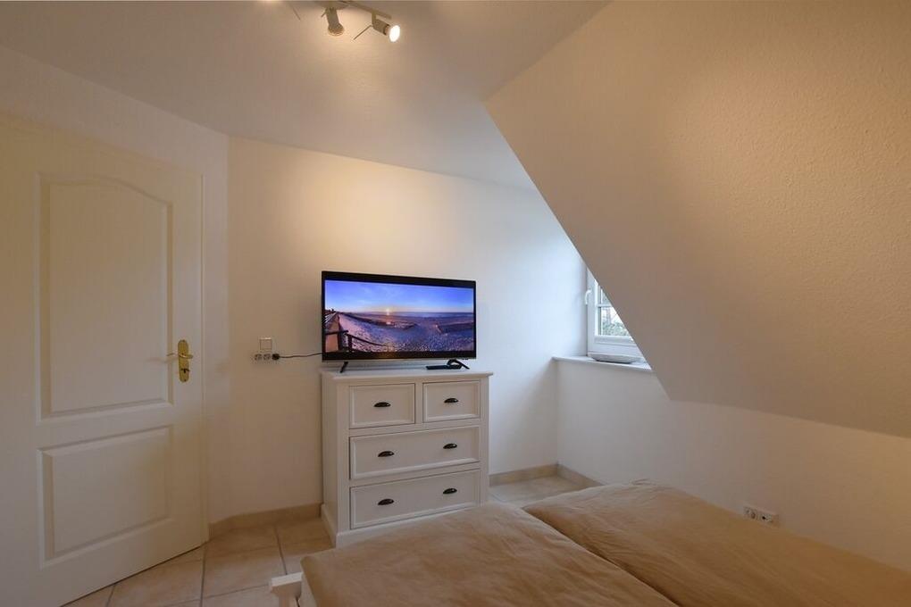 Moderne Mittelhausscheibe in zentraler Lage an der Ortsgrenze zu Westerland. EG: Wohn-/Essbereich mit Smart-TV, offene Küche, West-Terrasse, kleines Duschbad