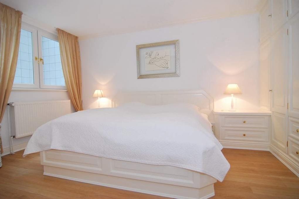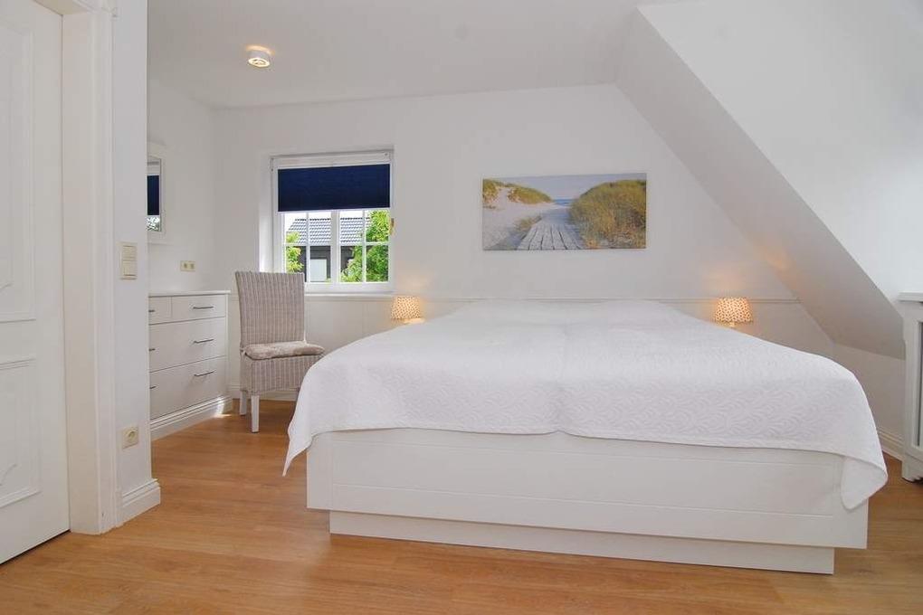 Exklusive Ferienhaushälfte in Süd-Ost-Lage mit ca. 120m². EG: Kleiner Flurbereich mit Garderobe und Treppe ins OG. Wohnzimmer mit Echtholzboden, 2- und 3-Sitzer-Sofa sowie Essplatz und offener Landhausküche mit Mikrowelle/Backofen-Kombi und Geschirrspüler. Flat-TV / W-LAN (ohne Gewähr) und Stereoanlage. Möblierte Südterrasse und Garten. UG: 1 geräumiges Schlafzimmer mit Doppelbett und Einbauschränken, Duschbad/WC, Waschmaschine/Trockner OG: 1 großes Schlafzimmer mit Doppelbett und Einbauschränken, Flat-TV, Duschbad/WC. DG: 1 Schlafzimmer mit 2 Einzelbetten. Tierhaltung ist nur im Erdgeschoss gestattet. Rauchen ist im ganzen Haus untersagt. Parken an der Straße. Bettwäsche und Handtücher sind zur Anreise aufgezogen.
