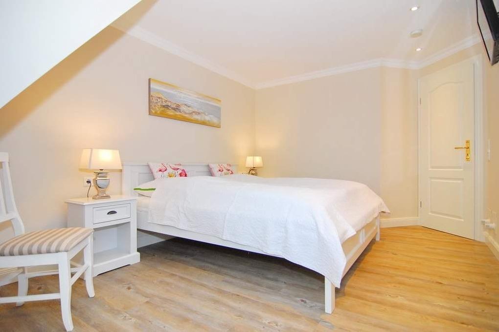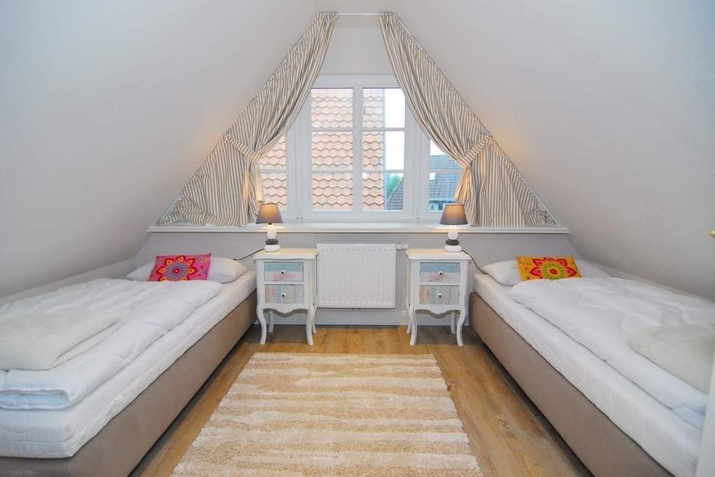Exklusive Haushälfte in zentraler Dorflage Tinnums. Ca. 157m² für 6 Personen. EG: Großes Wohnzimmer mit Sitz- und Essecke, Flat-TV, WLan (ohne Gewähr), Kamin und offener Küche mit Backofen, Mikrowelle und Geschirrspüler. Möblierte Südterrasse und Garten. Hauswirtschaftsraum mit Waschmaschine und Trockner, Flur und Gäste-WC. Im Obergeschoss befinden sich 2 Schlafzimmer mit Doppelbetten, Einbauschränken und Flat-TV, 1 Duschbad ensuite, 1 Wannbad mit Duschvorrichtung, 1 Raum mit Sauna. Im DG befindet sich ein Schlafzimmer mit 2 Einzelbetten und ein offener "Lebensraum". Tierhaltung ist gestattet und muss kostenpflichtig bei der Buchung angemeldet werden. Bettwäsche und Handtücher sind zur Anreise aufgezogen. 2 Stellplätze am Haus stehen Ihnen zur Verfügung.