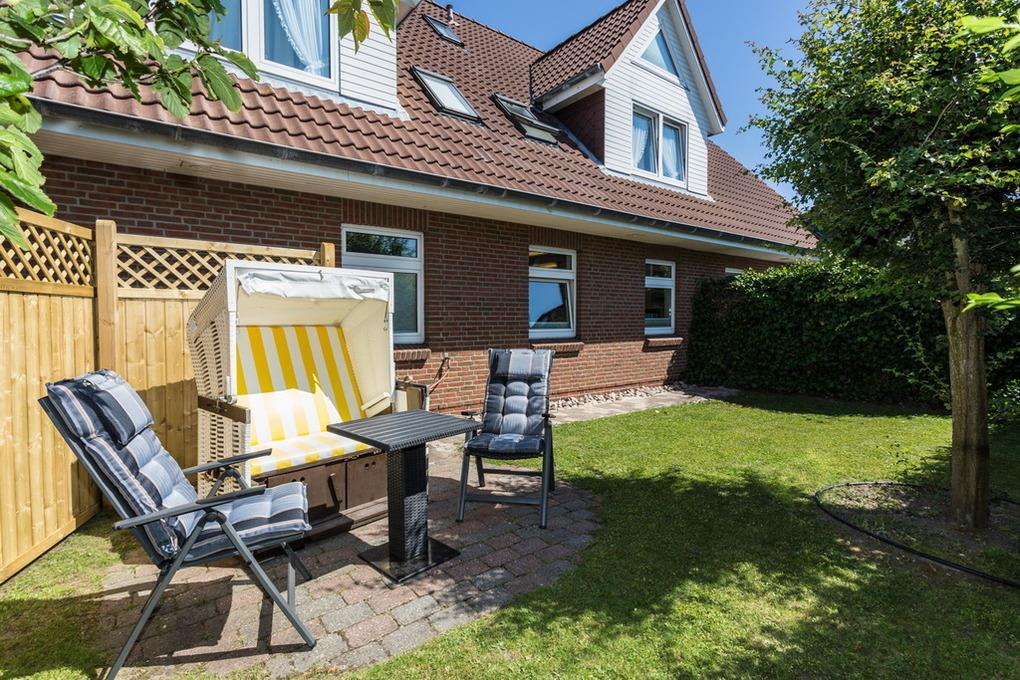 Die geräumige 2-Zimmer-Ferienwohnung für 2-3 Personen, ca. 45m², besteht aus einem separaten Schlafzimmer mit Doppelbett, Duschbad / WC, Wandklappbett im Wohnraum, Wohnzimmer mit Essplatz sowie Sitzgruppe, Flat-TV, Radio, Telefon und kostenfreiem W-Lan. Die Küchenzeile ist zum Wohnraum offen mit Geschirrspüler und Mikrowelle ausgestattet. Waschmaschine sowie Trockner sind gemeinschaftlich auf der gleichen Ebene im Obergeschoß nutzbar. Ein Pkw-Stellplatz befindet sich vor dem Haus. Der gemeinschaftliche Außenbereich bietet einen Terrassenplatz mit Strandkorb und Gartenmöbeln, einen überdachten Sitzbereich, einen großzügigen Fahrradunterstand sowie Schränke für Ihre Golfbags. Tierhaltung ist nicht gestattet. Bettwäsche und Handtücher sind zur Anreise aufgezogen.