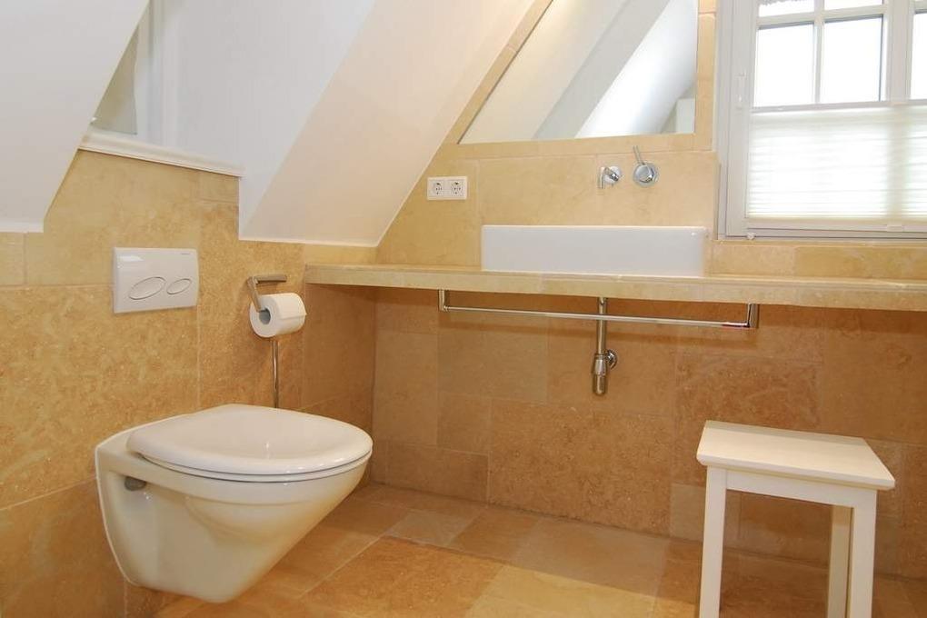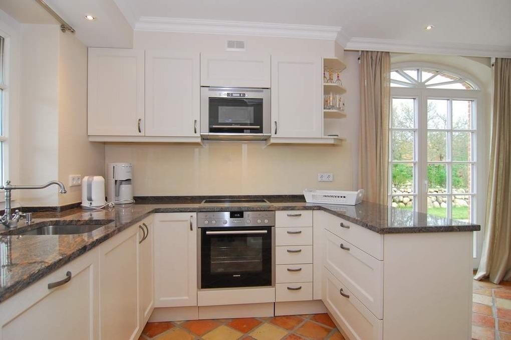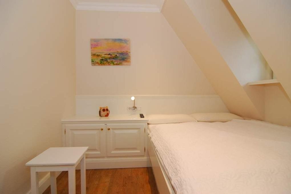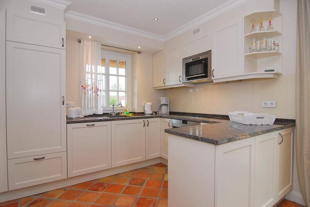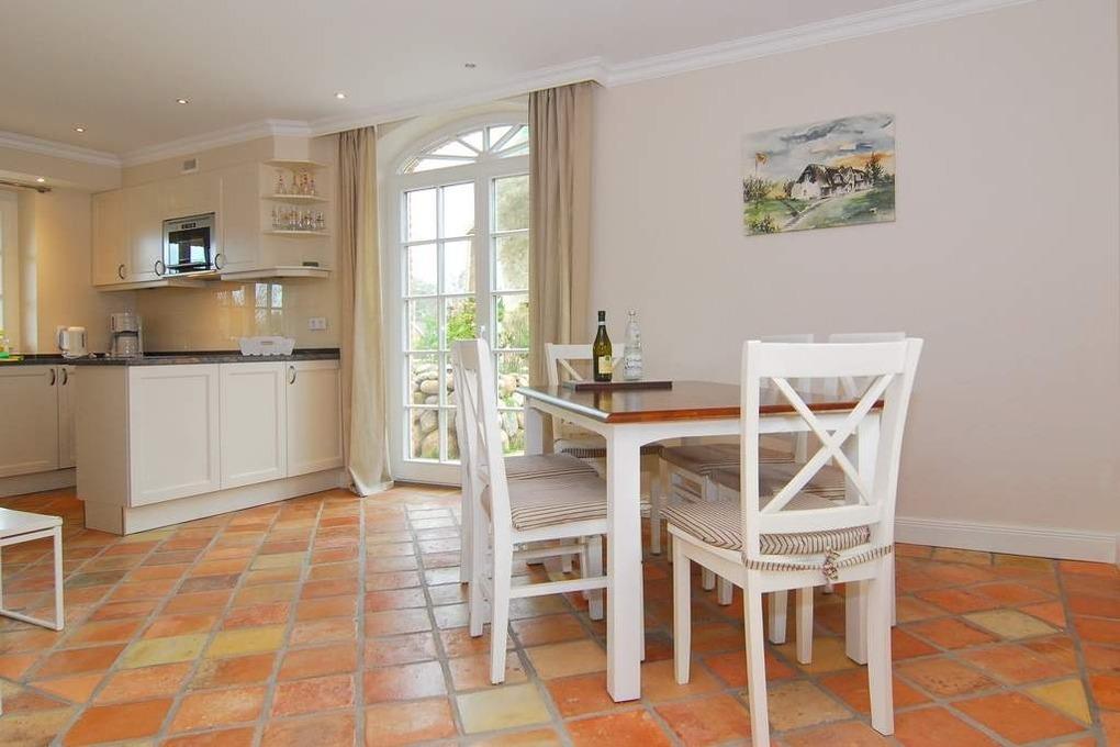 Schönes Ferienhaus / Doppelhaushälfte unter Reet auf sonnigem Südgrundstück. Ca. 113m². EG: gefliestes Wohn- und Esszimmer mit moderner Marken-Einbauküche (GS, Mikrowelle, etc.), schöner Essplatz am Fenster, Couchecke mit Doppelcouch, 2 Sesseln und Hocker, Kamin, WLan, Flat-Screen, Stereoanlage mit CD, Gäste-WC, HW-Raum mit WA/TR, Garderobe. OG: 1 Schlafzimmer mit Doppelbett, Flat-Screen und eigenem Duschbad/WC, 1 weiteres Schlafzimmer mit Doppelbett und Flatscreen sowie 1 Schlafzimmer mit 1,20x2m und Flat-Screen, 1 Vollbad/WC. Zusätzlicher Schrank-/Abstellraum im DG. Große Süd- und Ostterrasse mit Gartenmöbeln. Nichtraucher-Haus! Grillen verboten!!! Bettwäsche und Handtücher sind zur Anreise aufgezogen. Tierhaltung ist erlaubt, muss bitte angemeldet werden!