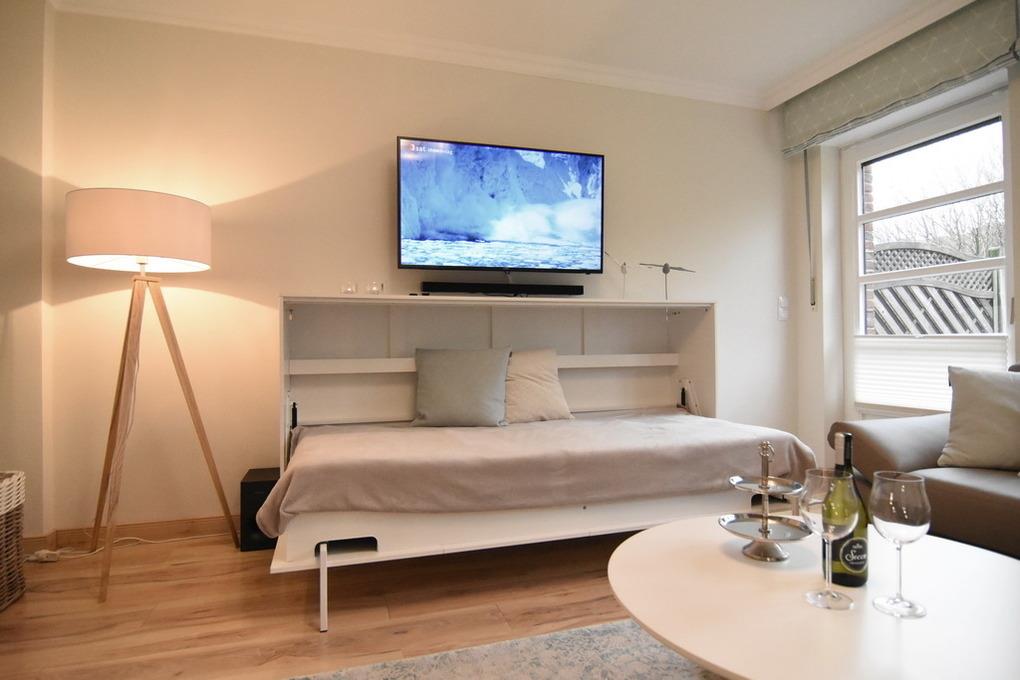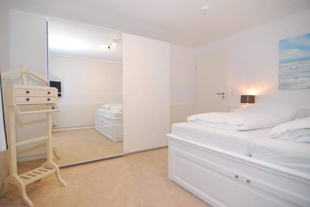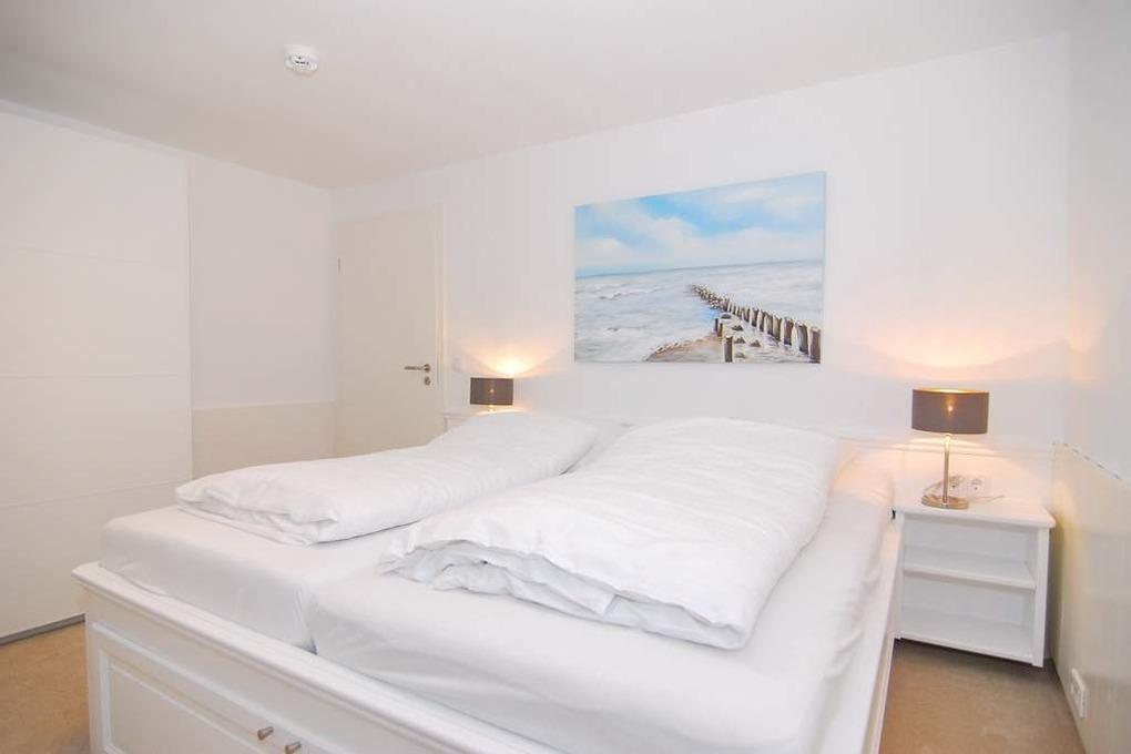 Großzügiges und schickes 3-Zimmer-Apartment in Südwestausrichtung im Haus "Sinfonie". Ca. 90 m², Nichtraucher. EG: großer Wohnzimmer mit 2 Südterrassen, Strandkorb (Apr.-Okt.), Sitzgruppe, Essplatz für 6 Personen, Flat-TV, Radio, 1 Einzelschrankbett (90x200), separate Küche mit Geschirrspüler und Backofen, Schlafzimmer mit Doppelbett (2x80x200) , Duschbad/WC, Diele/Garderobe UG: Schlafzimmer mit Doppelbett (2x90x200) und Flat-TV, Duschbad/WC und Flur. Kostenlose Benutzung des Schwimmbades und der Sauna. Waschmaschine und Trockner über Münzautomaten. Bettwäsche und Handtücher sind zur Anreise aufgezogen! Tierhaltung ist nicht gestattet.