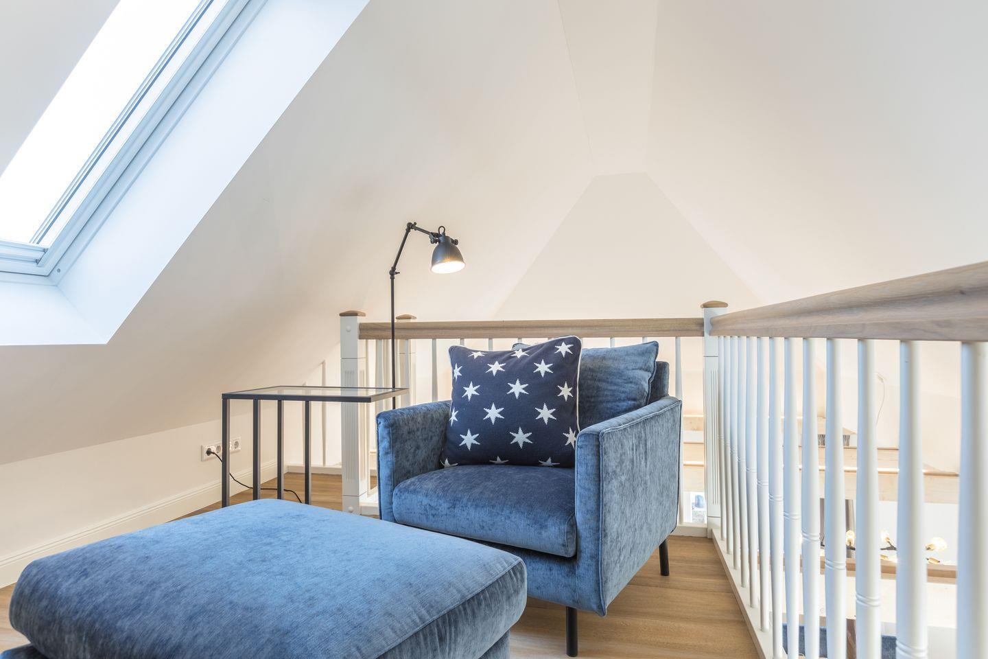 Im Dachgeschoss fängt dann der Himmel an: die offene Galerie lädt zum entspannten lesen oder träumen im Designsessel ein. Wer es danach noch ins Bett schafft, schlummert auf bequemen Boxpringmatratzen und kann morgens dann direkt ins En-Suite Badezimmer gehen.