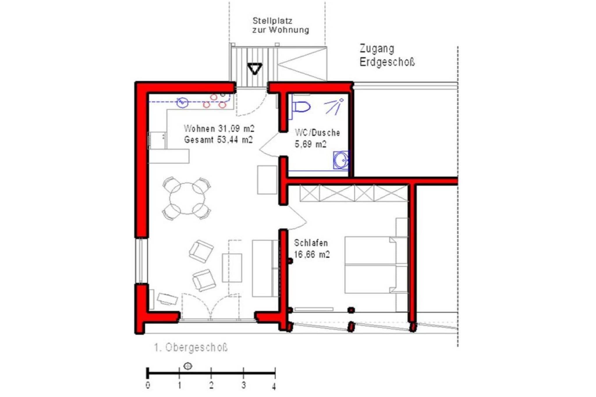 Our house is situated in a quiet location on the outskirts of town, right at the forest's edge.