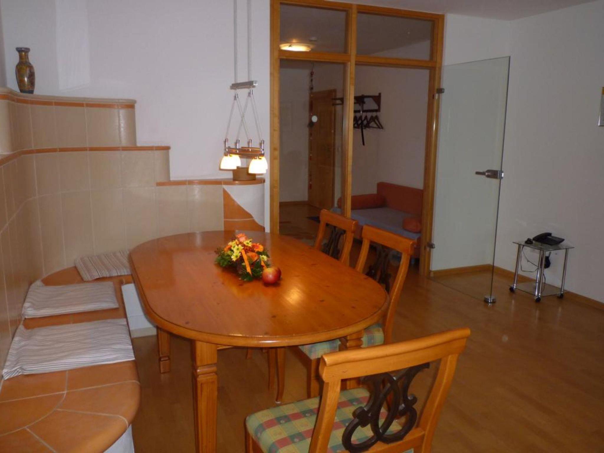 Schlafzimmer mit 2 x 2 m großes Doppelbett, Wohnzimmer mit elektrisch beheizte Kachelofen Sitzbank, großzügiger Badbereich mit Sauna, Parkettboden mit Fußbodenheizung, Küche ist voll ausgestattet mit z.B. Cerankochfeld mit Backofen, Spülmaschine, Mikrowelle.