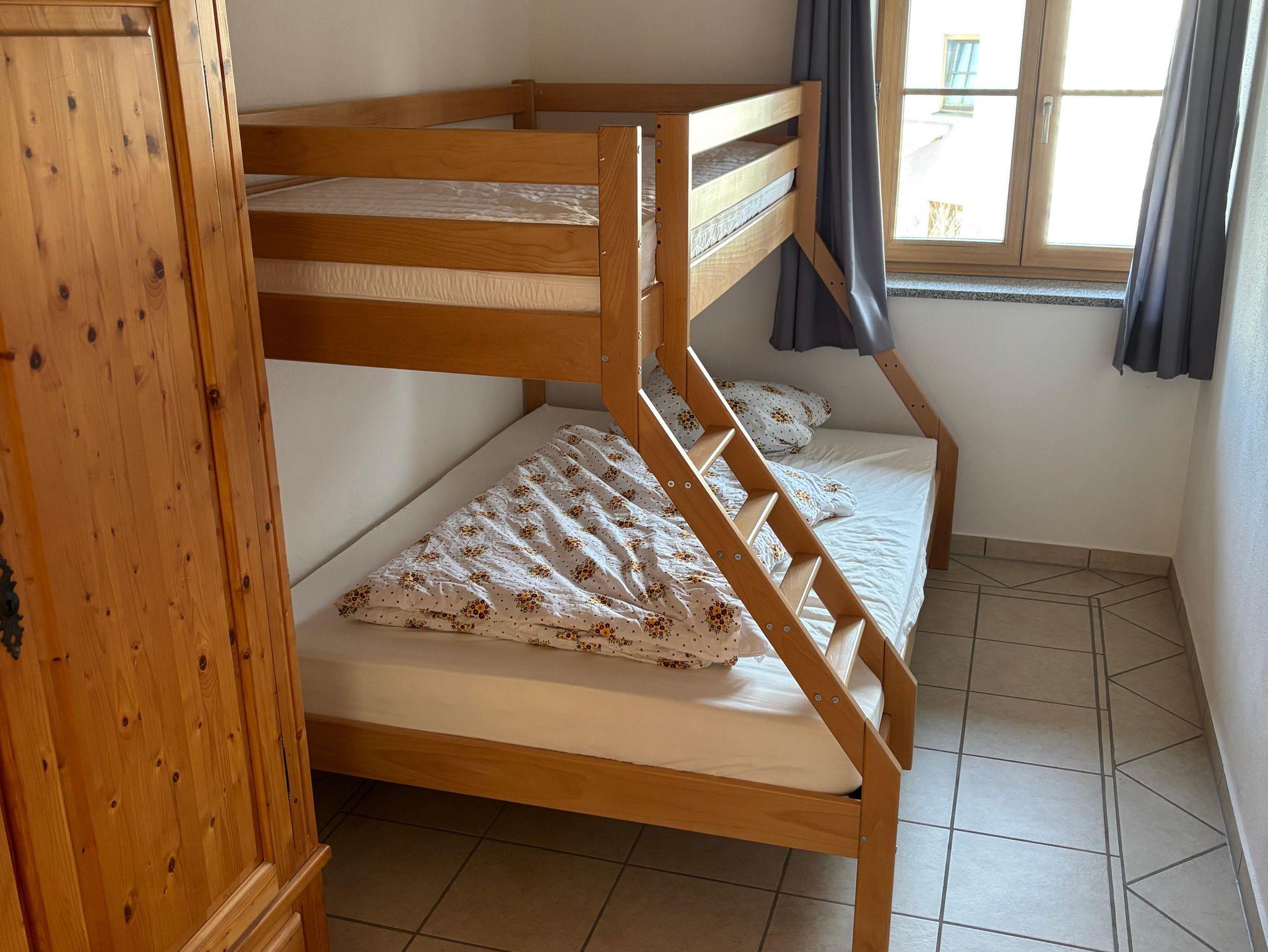 1x Doppelbett (180x200), 1 Stockbett perfekt für zwei Kinder (90x190), gemütliche Couch (mit 2 Schlafmöglichkeiten), Esstisch, und gemütliche Eckbank