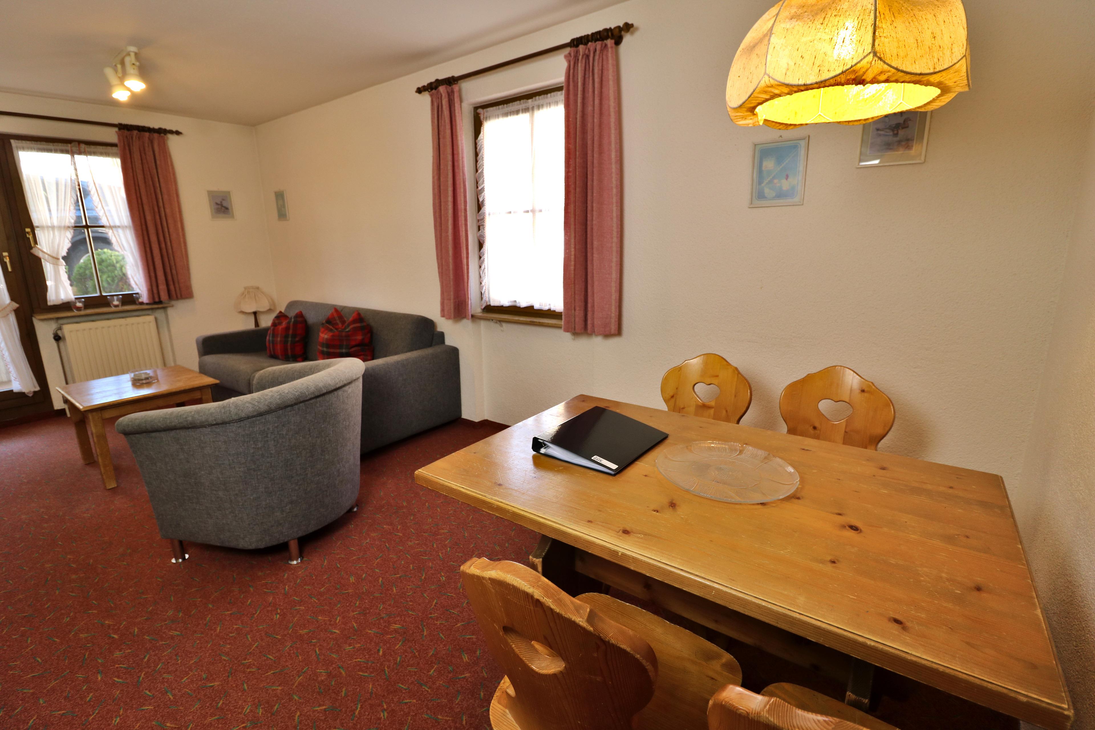 - Wohnzimmer mit Schlafsofa (für 2 Personen), Flatscreen-TVs?/?DVD-Player, Radio und Essplatz