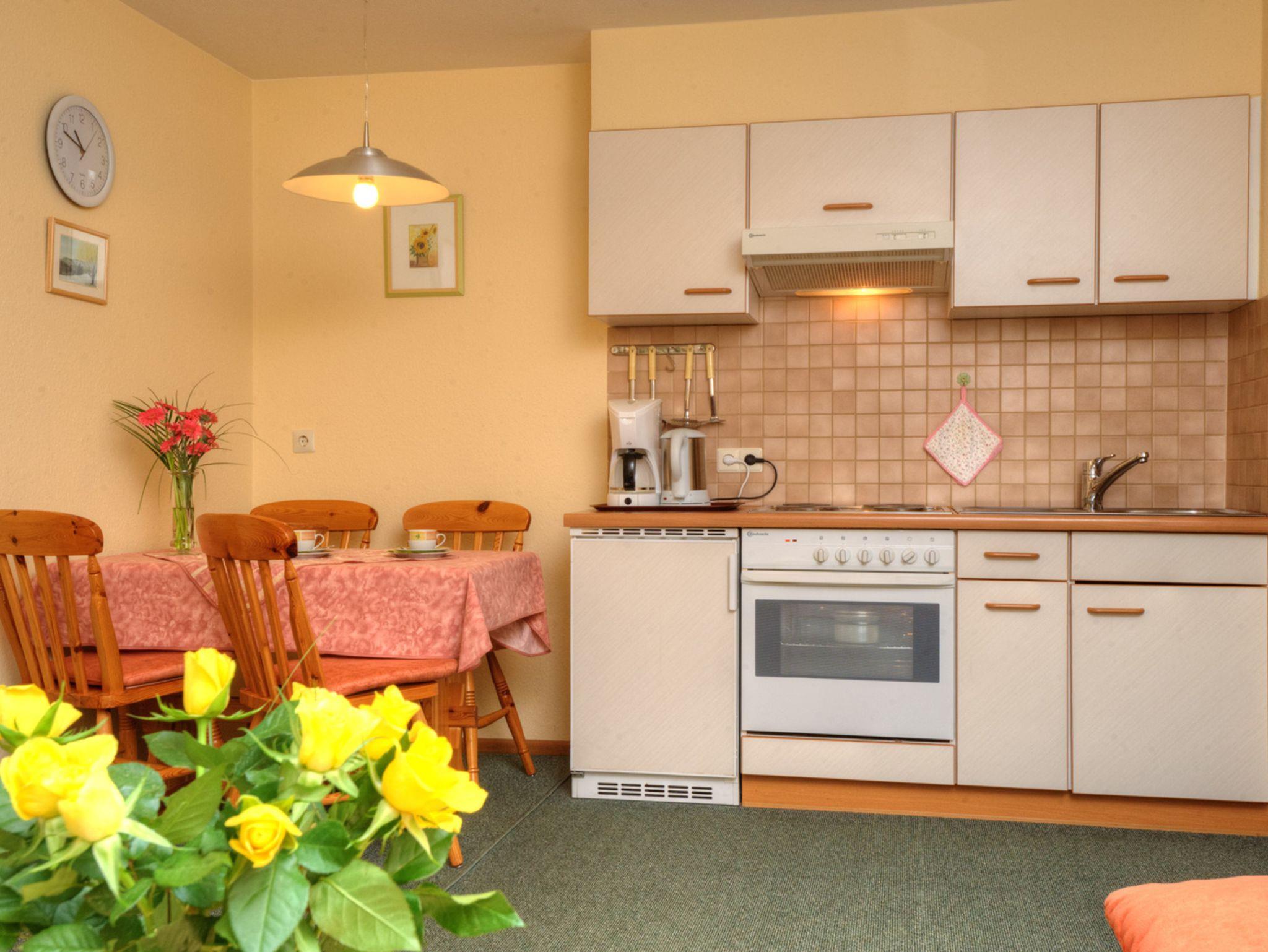• Komplett eingerichtete Küche: Cerankochfeld Herd, Backofen, Filterkaffeemaschine, Wasserkocher, Toaster, Mikrowelle, Mixer, …