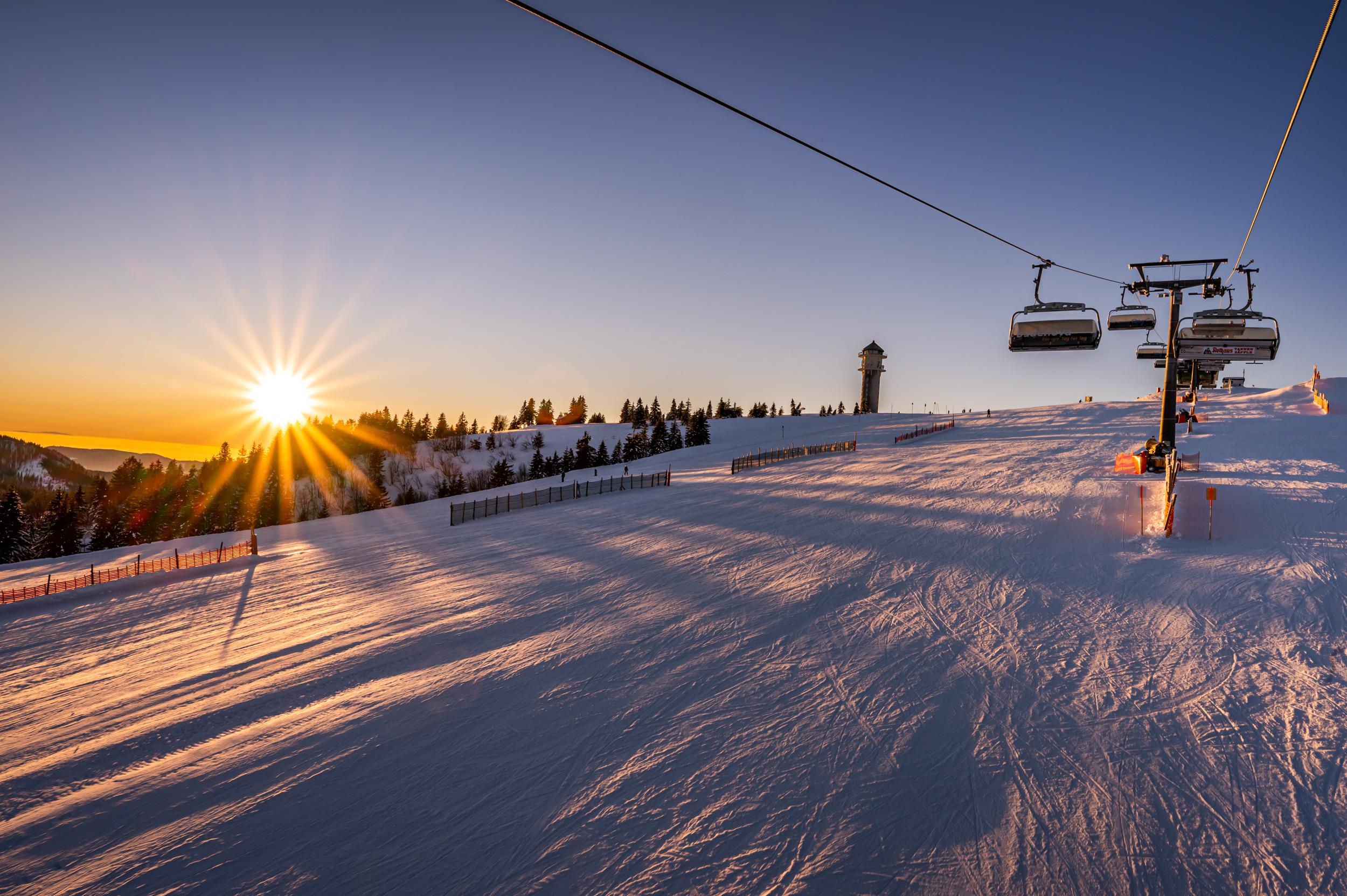 Die Skibus-Haltestelle ist 50 m entfernt – in nur 10 Minuten bringt Sie der Bus zum Skigebiet am höchsten Berg des Schwarzwaldes, dem Feldberg, mit 68 Pistenkilometern.