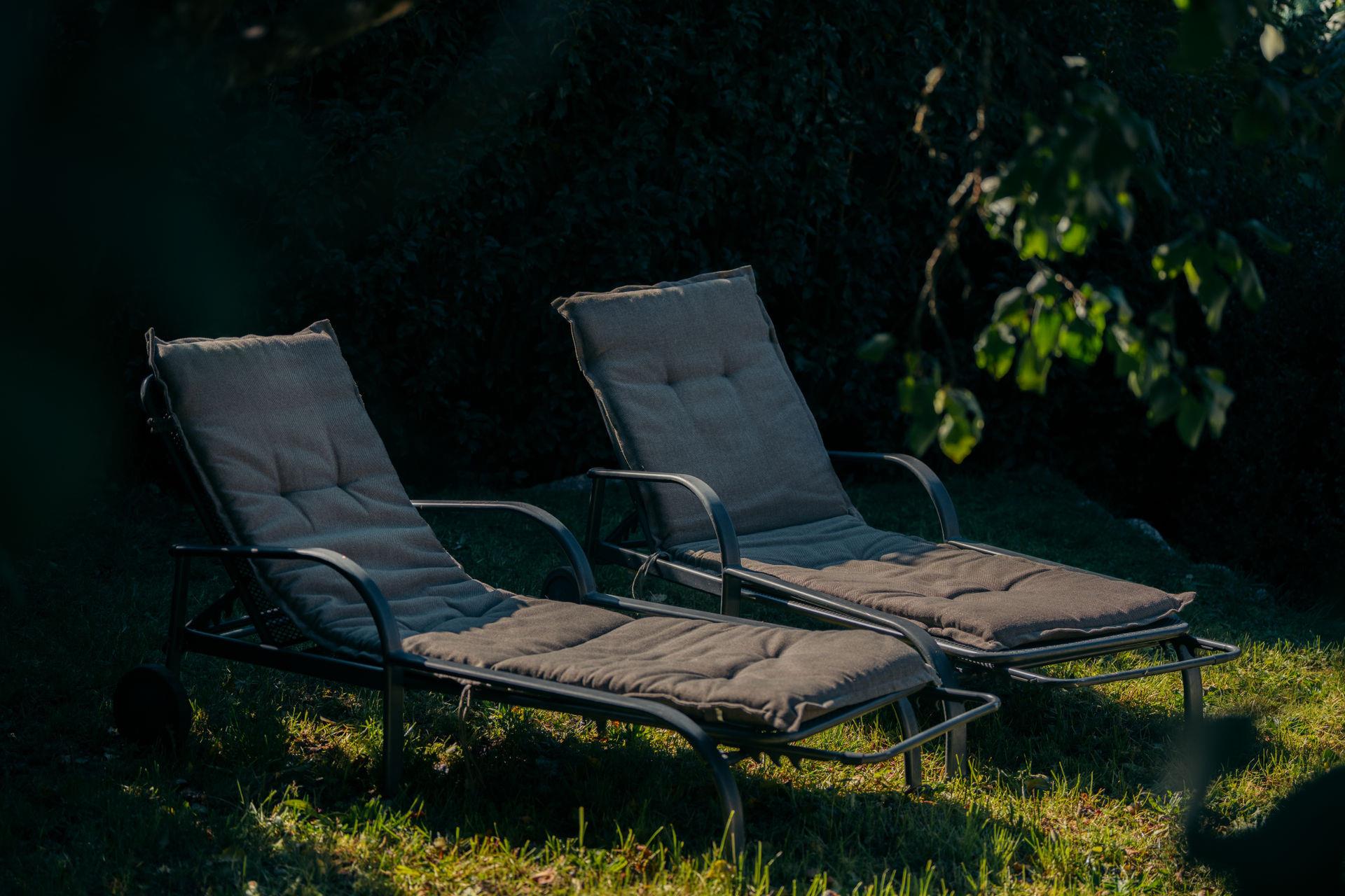 Die Wohnung erstreckt sich über zwei Etagen im 1. OG und DG und ist mit einer Holztreppe verbunden. Es gibt zwei Schlafzimmer und ein großzügiges Bad mit Dusche im ersten Stock. Hier befindet sich auch die Sauna. Sowie zwei weitere Schlafzimmer mit eigenem Bad mit Dusche und Badewanne unter der gemütlichen holzgetäfelten Dachschräge im Dachgeschoss. Jedes Schlafzimmer ist mit Smart-TV ausgestattet.