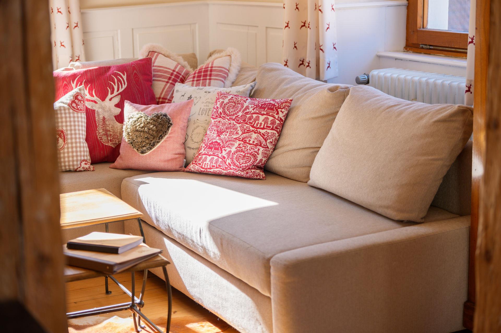 Das Haus aus der Mitte des 19. Jahrhunderts mit der historischen Holzvertäfelung und edlem Dielenboden in allen Räumen strahlt Gemütlichkeit aus. Die 150 Quadratmeter Wohnung ist mit hochwertigen Naturmaterialien, Massivholz sowie hochwertigen Stoffen und Kissen im alpinen Stil ausgestattet.