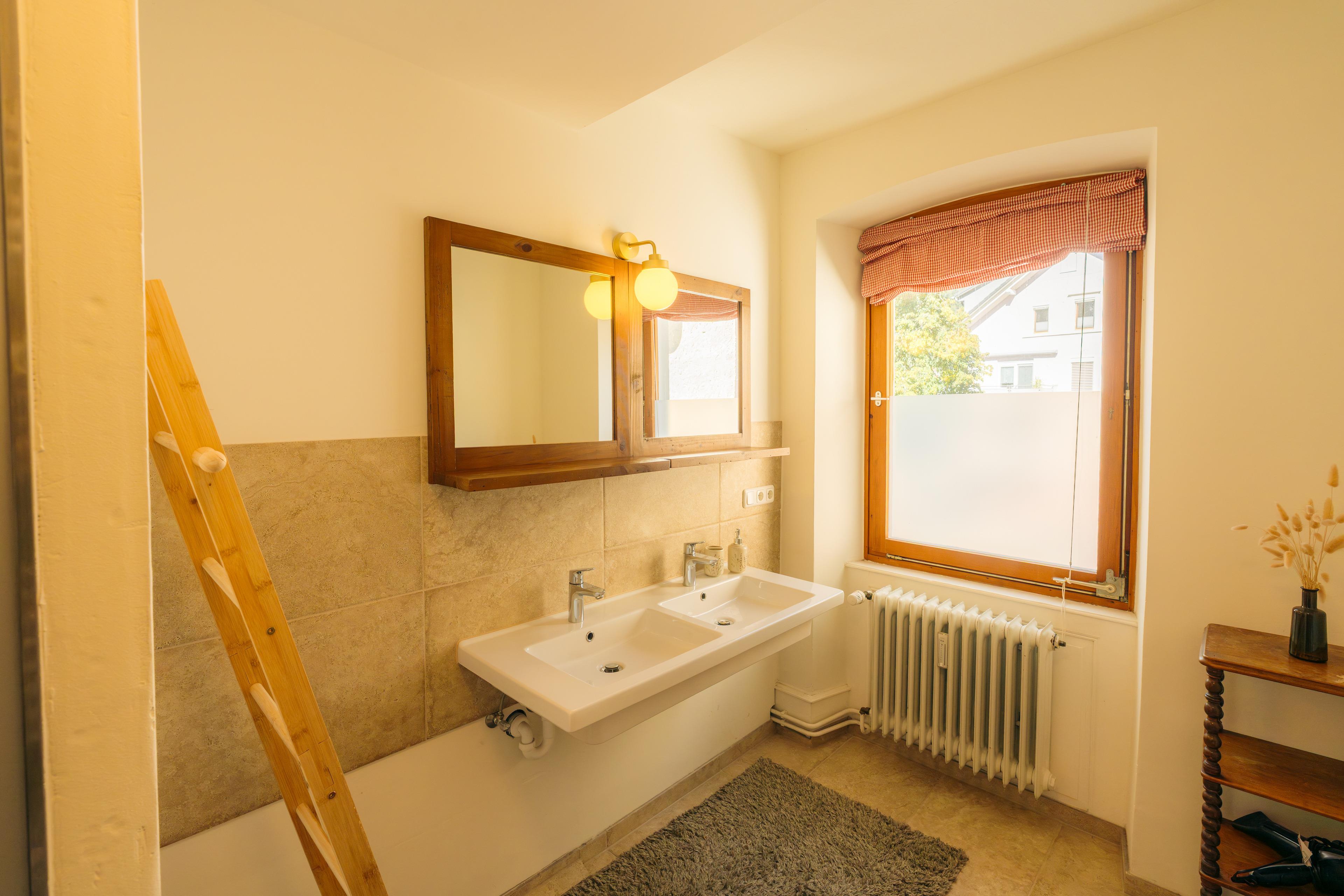 The house from the middle of the 19th century with the historic wood paneling and noble floorboards in all rooms radiates coziness. The 150 square meter apartment is furnished with high quality natural materials, solid wood and high quality fabrics and pillows in alpine style.