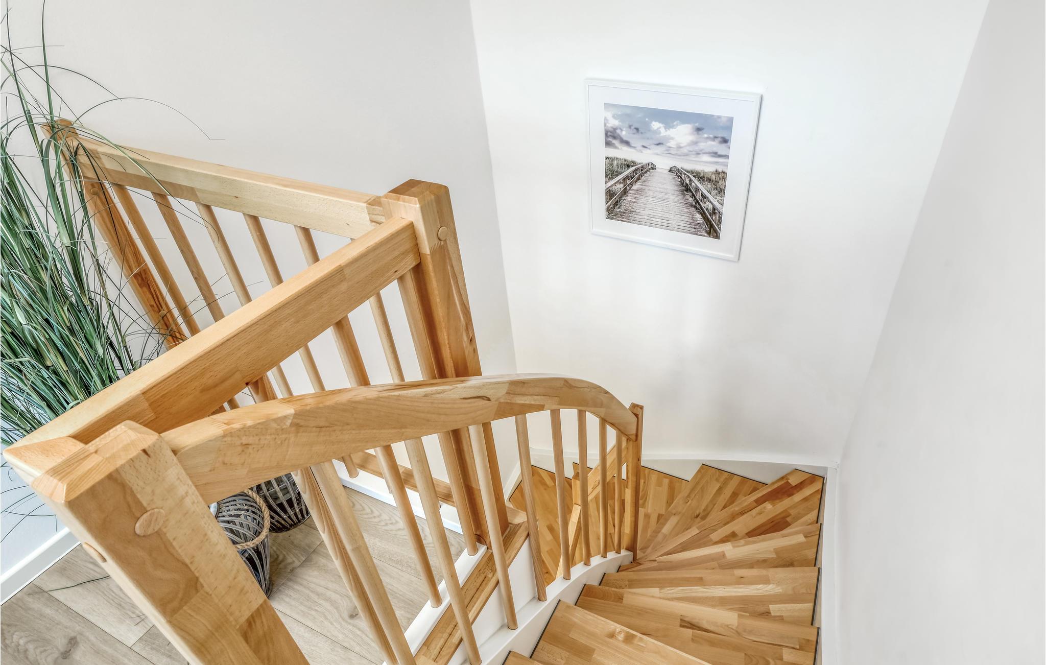 Fra stueetagen fører en buet trappe op til den øverste etage i huset, hvor to rummelige soveværelser venter på jer. Her kan I indsnuse den friske havluft fra altanen, som er tilgængelig fra begge soveværelser. Kvalitetsmøbler og en vellykket rumdeling gør huset til en drøm af en feriebolig.
