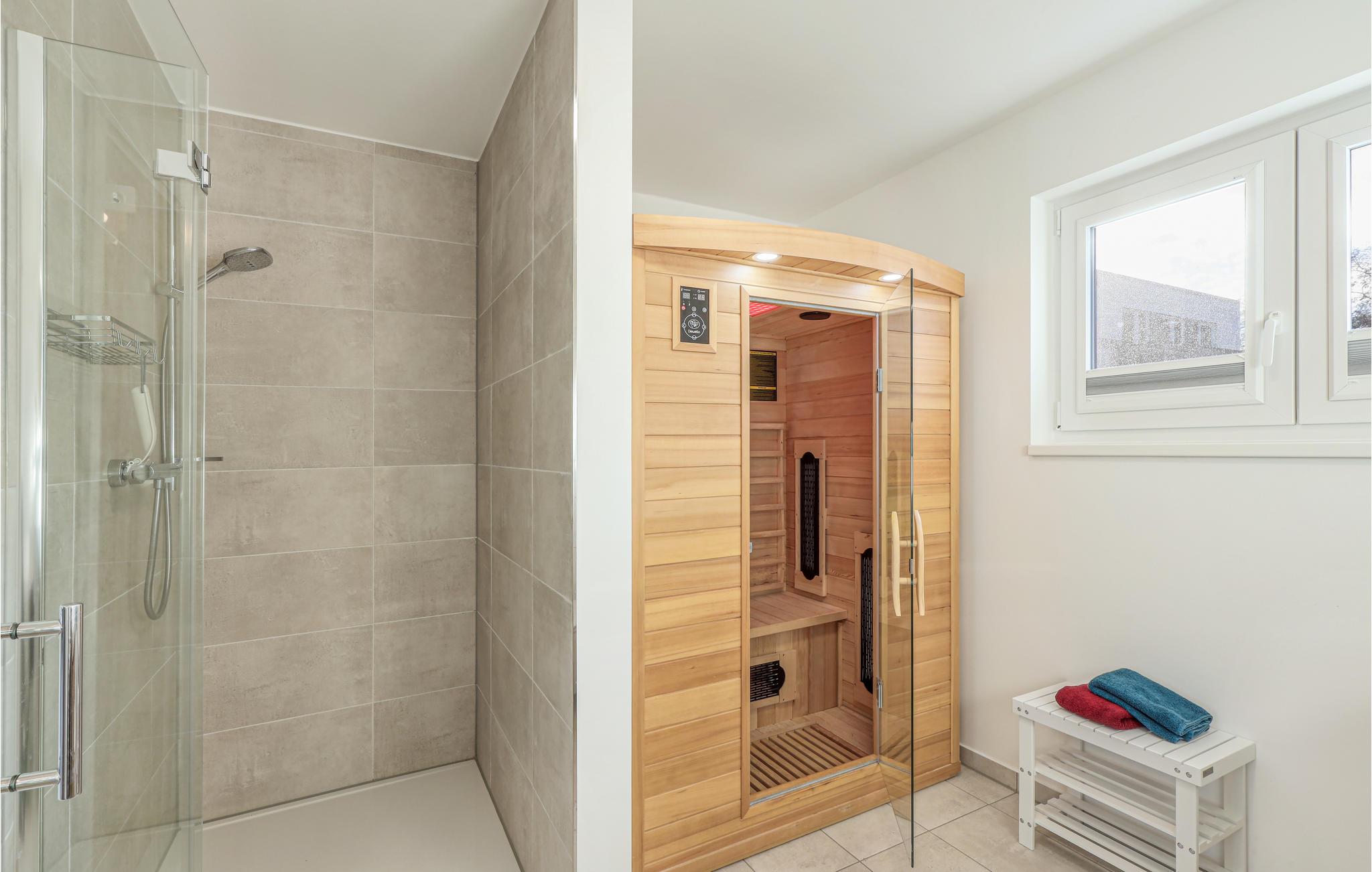 Jeres hus strækker sig over 2 etager. I stueetagen er der et åbent, hyggeligt opholdsområde med en tilstødende haveterrasse og et moderne køkken, som indbyder til ophold gennem store vinduer. På kolde dage kan I sætte jer til rette foran den indbyggede pejs. Et lyst badeværelse med brusekabine og infrarød sauna samt et opbevaringsrum under trappen fuldender etagen.