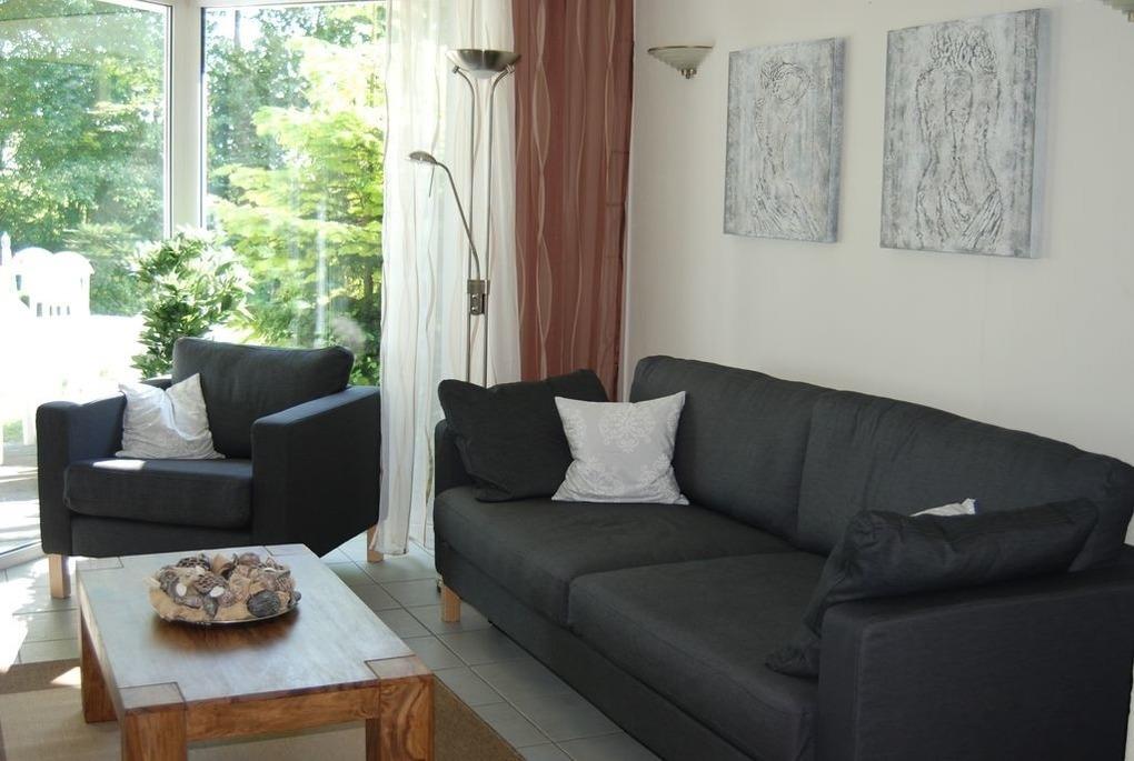 Es erwartet Sie ein gemütliches Haus mit 65 qm Wohnfläche und eigenem Garten. Die Doppelhaushälfte befindet sich in ruhiger Randlage. Das Haus ist komplett für 4 Personen ausgestattet. Im Erdgeschoss befinden sich der Wohnraum mit Küchenzeile (ausgestattet unter anderem mit Geschirrspülmaschine, Ceranfeld, Mikrowelle, etc.) und das Badezimmer mit Dusche. In der ersten Etage finden Sie 2 Schlafzimmer (1 x mit Doppelbett 2m x 2m, 1 x mit 2 Einzelbetten). In beiden Schlafzimmern bieten Einbauschränke großzügigen Stauraum. Das Haus wurde im Mai 2012 renoviert, inklusive neuem Badezimmer, neuer Küchenzeile und komplett neuem Mobiliar. Im Erdgeschoss ist ein Fliesenboden, in der ersten Etage wurde ein Laminatboden verlegt. Ein Flachbildfernseher mit Kabelanschluss und DVD-Player sowie eine Musikanlage sind im Wohnraum selbstverständlich auch vorhanden.