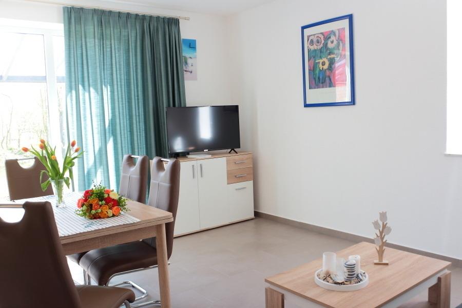 Von zwei neu errichteten Reihenhäuser steht das rechte Urlaubern zur Verfügung. Es bietet Platz für 6 Personen und einem Kleinkind bis zu 2 Jahren, zwei Badezimmer vorhanden. In ruhiger Wohnlage auf einem Hintergrundstück mit Garten können Sie die Sonne auf der möblierten Terrasse oder auf der Rasenfläche genießen. Ein Carport für den PKW und ein abschließbarer Fahrradstellraum mit E-Bike Ladestation wird geboten. W-Lan vorhanden