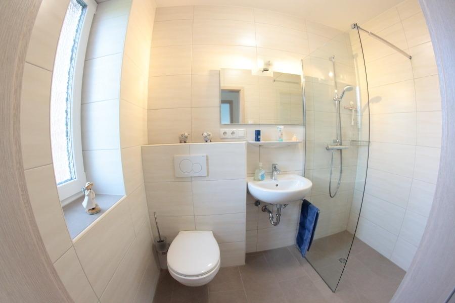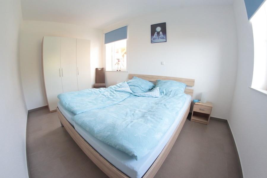 Das Ferienferienhaus ist über zwei Etagen bewohnbar und für 6 Personen ausgelegt. Sie haben im Erdgeschoss einen Wohnbereich mit einer gut ausgestatteten Küchenzeile (Ceranfeld, Backofen, Geschirrspüler, Kühlschrank mit Gefrierfach etc.). Im vorderen Bereich links befindet sich die gemütliche Sitzecke, dann schließt sich der Esstisch mit 6 Stühlen an. Im Erdgeschoss haben Sie ein Doppelschlafzimmer und ein modernes Duschbad mit einer begehbaren Dusche, WC und Waschbecken. Aus dem Wohnbereich führt die Treppe in den oberen Bereich. Dort gibt es ein weiteres modernes Duschbad mit einer begehbaren Dusche, WC und Waschbecken. Das zweite Doppelschlafzimmer und ein Zweibettschlafzimmer mit Babybett runden die Einrichtung ab. Alle Zimmer verfügen über Innenjalousie.