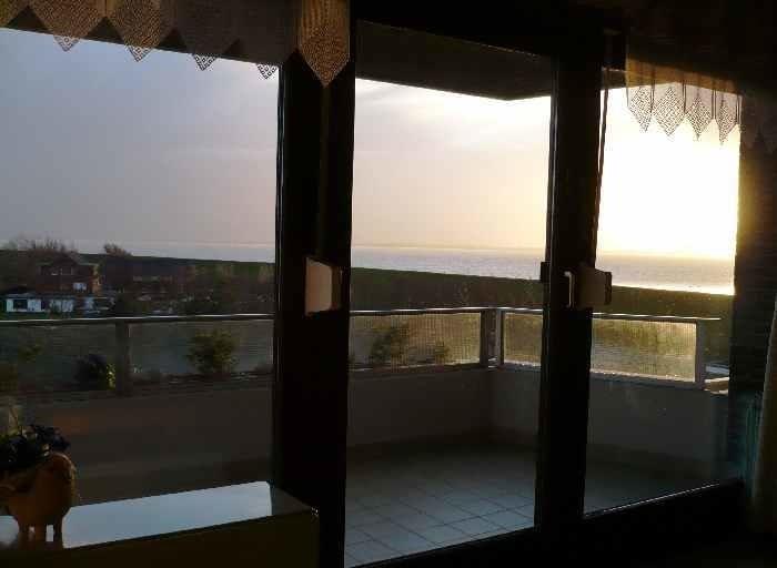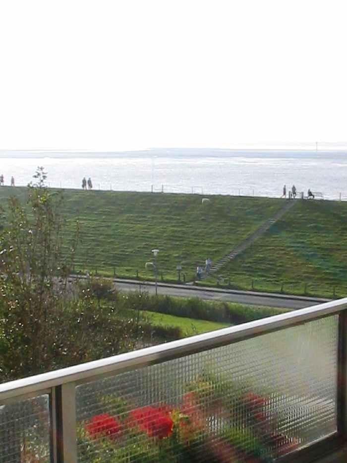 Die 52 m² große Komfort-Ferienwohnung für bis zu 4 Personen bietet Ihnen einen einmaligen Blick auf das Unesco Weltnaturerbe Niedersächsisches Wattenmeer und den Jade-Weser-Port, Deutschlands einzigen Tiefseehafen: Sie schauen zu jeder Zeit über den Deich auf die Nordsee - Meerblick pur ! Es ist eine der wenigen Ferienwohnungen an der gesamten Küste des Butjadinger Landes, von der aus Sie ohne Beeinträchtigung direkt auf das Meer schauen können.