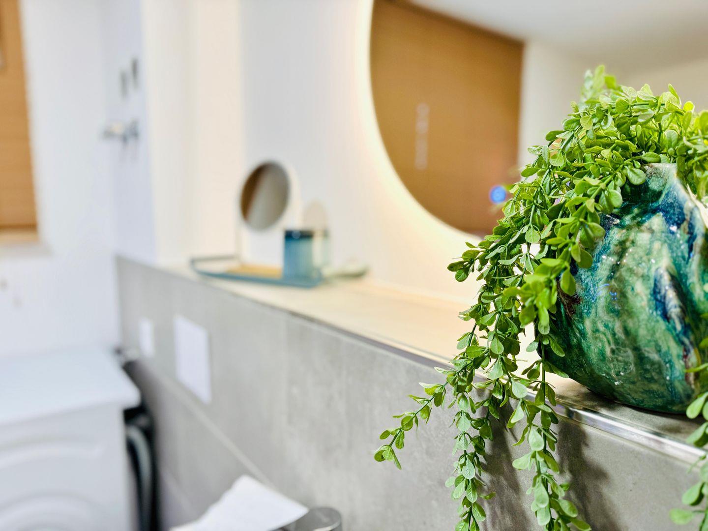 Das geräumige Bad im Erdgeschoss verwöhnt dich mit einer modernen, bodengleichen Dusche und einer Infrarotsauna – für entspannte Wohlfühlmomente nach einem Tag an der Nordsee. Eine Waschmaschine steht ebenfalls zur Verfügung.