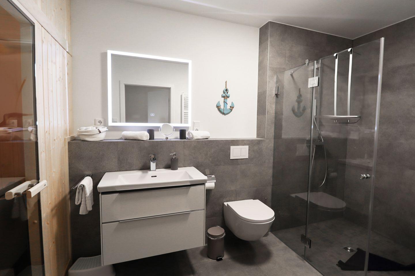 Das Wellnessbad mit privater Sauna und extrabreiter, bodengleicher Dusche ist ideal für Senior*innen oder Gäste mit Gehhilfen. So wird euer Spa-Erlebnis komfortabel und barrierearm – zu jeder Jahreszeit.