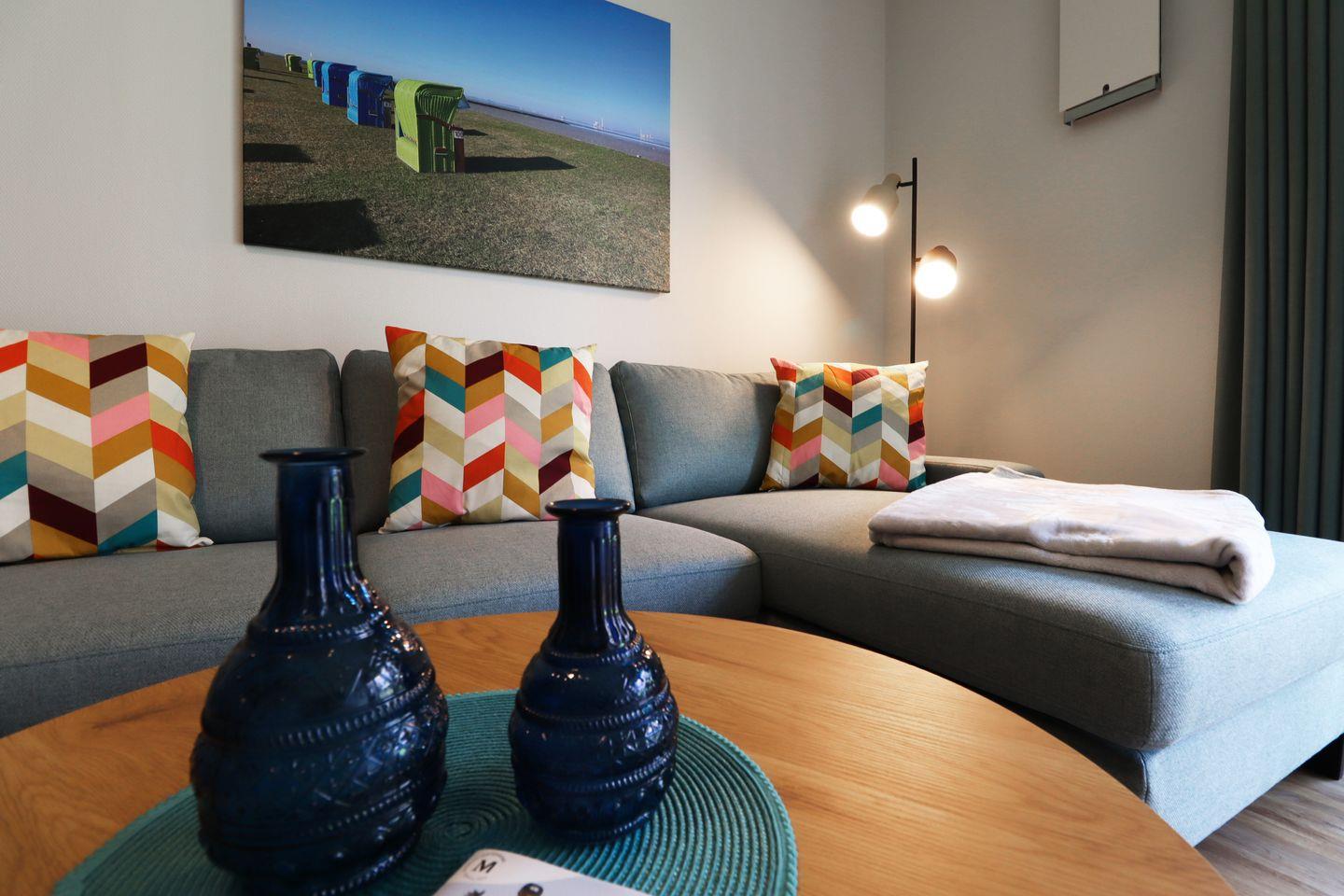 Reist ihr mit Freunden oder der ganzen Familie? Dann bucht den benachbarten **Lieblingsplatz** oder den **Dünenzauber** im 1. Obergeschoss einfach mit dazu! So seid ihr nah beieinander, habt aber trotzdem eure eigene Privatsphäre.