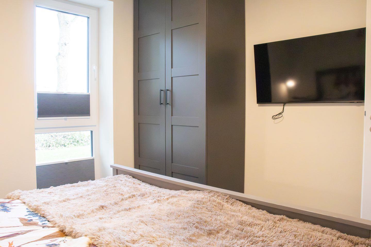 Im Hauptschlafzimmer erwartet dich ein komfortables Doppelbett, im zweiten Schlafzimmer ein Etagenbett, das auf den Bildern noch nicht montiert ist. Durch die durchdachte Raumaufteilung bleibt hier viel Platz zum Spielen – ideal für Kinder. Insgesamt bietet die Wohnung Platz für bis zu 5 Personen.