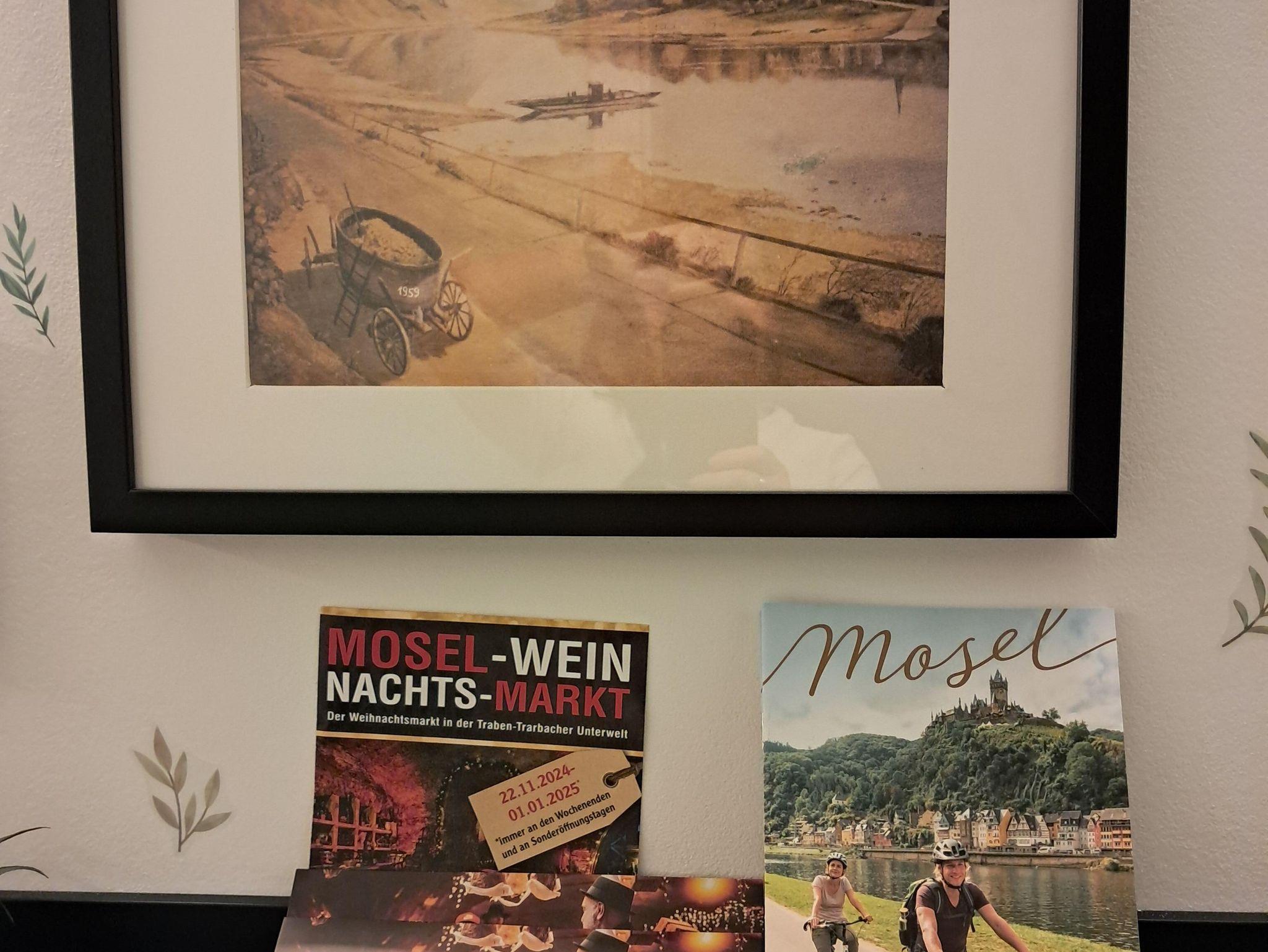 Auf Wunsch können wir Ihnen auch ein Kinderbett und einen Hochstuhl bereitstellen, damit sich auch unsere kleinen Gäste rundum wohlfühlen.Außenbereich und FahrradmöglichkeitenZusätzlich bietet die Ferienwohnung Mosel einen kleinen, überdachten Freisitz. Hier können Sie bei einem Glas Wein den Tag und das Errlebte noch einmal Revue passieren lassen. Ob zum Lesen, Entspannen oder einfach nur zum Verweilen – dieser Platz lädt zum Genießen ein.Für aktive Gäste steht außerdem eine Unterstellmöglichkeit für zwei Fahrräder zur Verfügung. Erkunden Sie die reizvolle Umgebung mit dem Rad und genießen Sie die malerischen Ausblicke entlang des Moselradwegs. Ein besonderer Vorteil: Parkmöglichkeiten finden Sie direkt vor der Unterkunft – und das kostenlos. So können Sie ganz entspannt anreisen und die Seele baumeln lassen.
