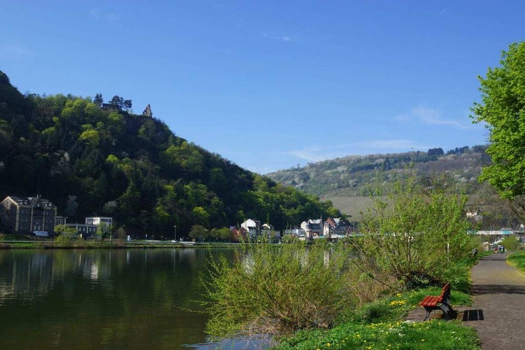 Direkt an der Mosel gelegen, liebevoll eingerichtet im Stile der Gründerzeit, inkl Pool und Sauna, exklusiv für unsere Gäste des Moseljuwels ! Wohnzimmer Chesterfield Sofas, 65Zoll Fernseher, Netflix , Amazon Prime, Ein Weinrepertoire unserer heimischen Winzer steht zu ihrer Auswahl zur Verfügung. Küche massiv Holz, Ceranfeld, Spülmaschine, Melitta one Touch Kaffeevollautomat Schlafzimmer Original-massiv natur Eichenholzmöbel aus der Gründerzeit, einstellbare Lattenroste sowie Federkern-Matratzen HighTech300 für erholsamen Schlaf. 65 Zoll Fernseher 2 Stück Touren-Fahrräder Kanus WIFI Netflix Amazon Prime Video Zattoo DSL-Flat Bootssteg FITNESSRAUM : Profigeräte, Crosstrainer, Ergometer-Sitzfahrad mit Lehne, Fitness-Turm