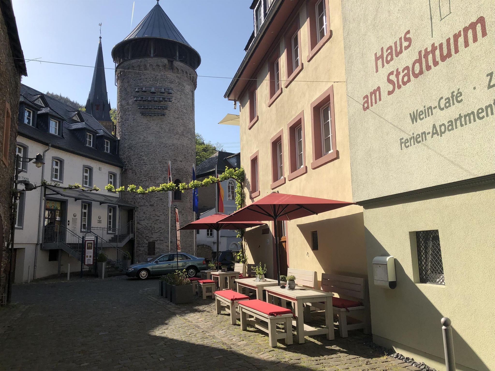 Im benachbarten Haus am Stadtturm können Sie gerne in unserem hübschen Wein-Café frühstücken (nicht im Übernachtungspreis enthalten).
