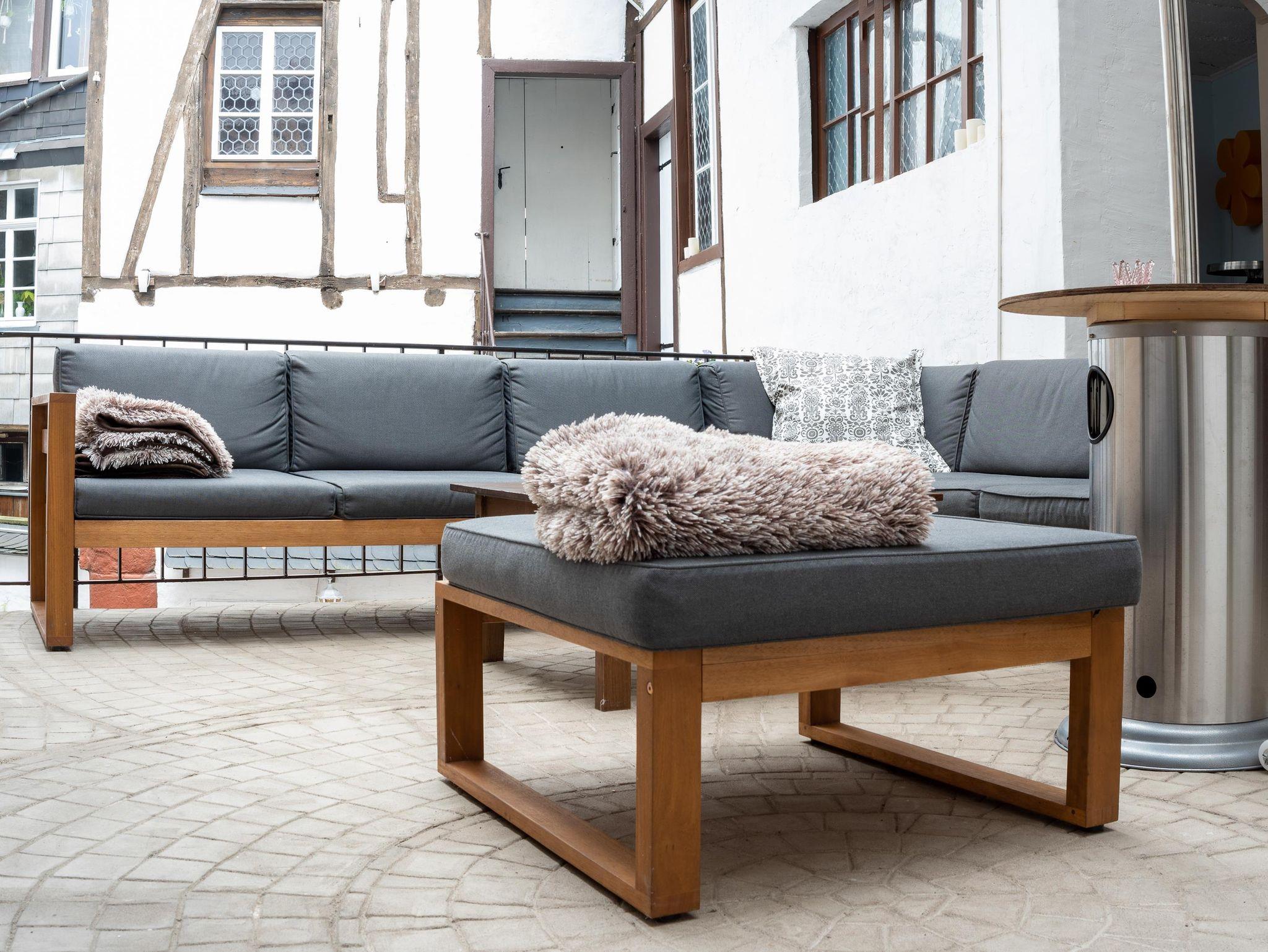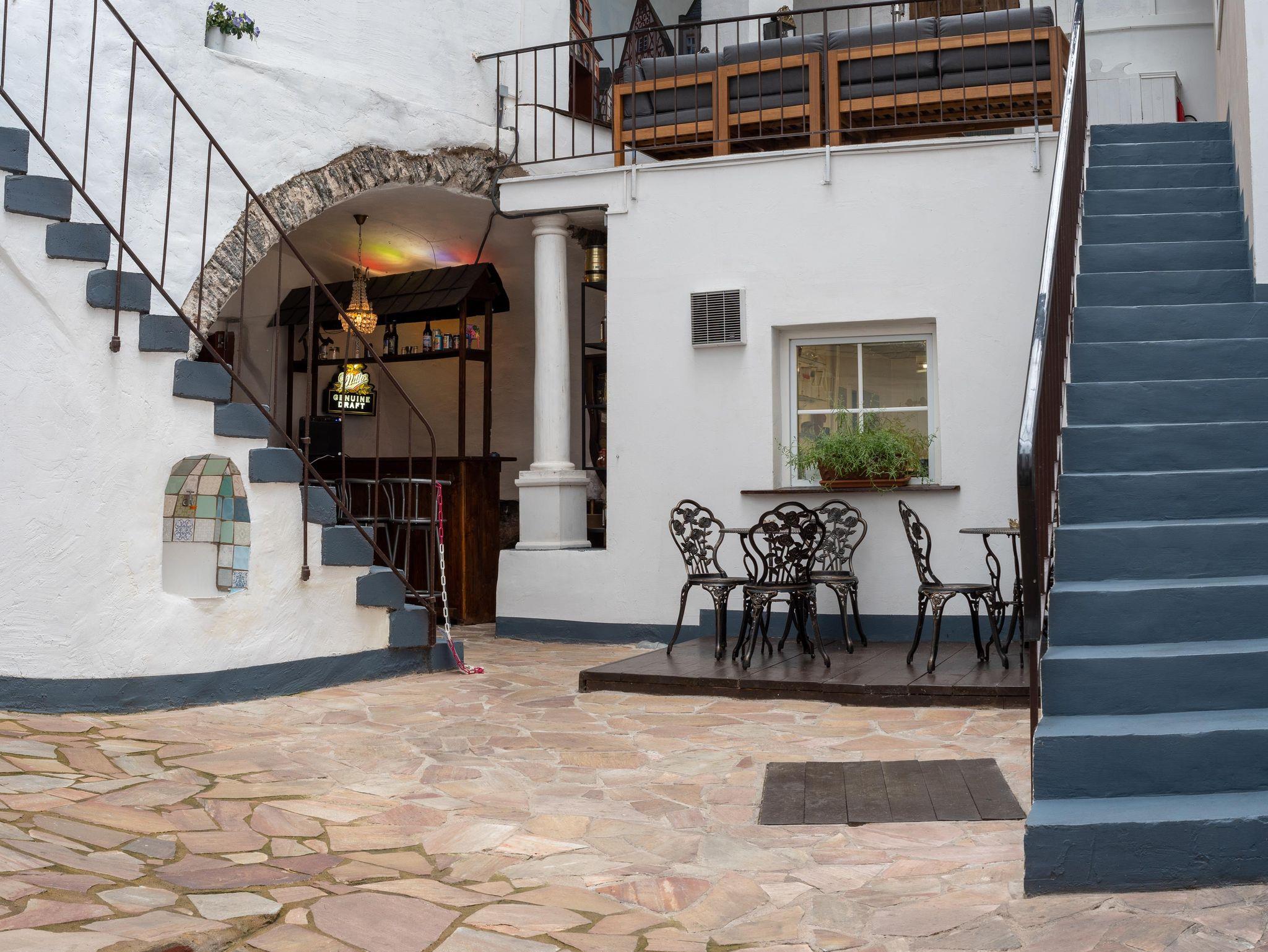 Im Innenhof des Hauses befindet sich die geschmackvoll gestaltete, märchenhafte Terrasse welche von allen Feriengästen gemeinsam genutzt werden kann. Überdacht und trotzdem draußen bieten sich hier diverse Möglichkeiten zur Unterhaltung.