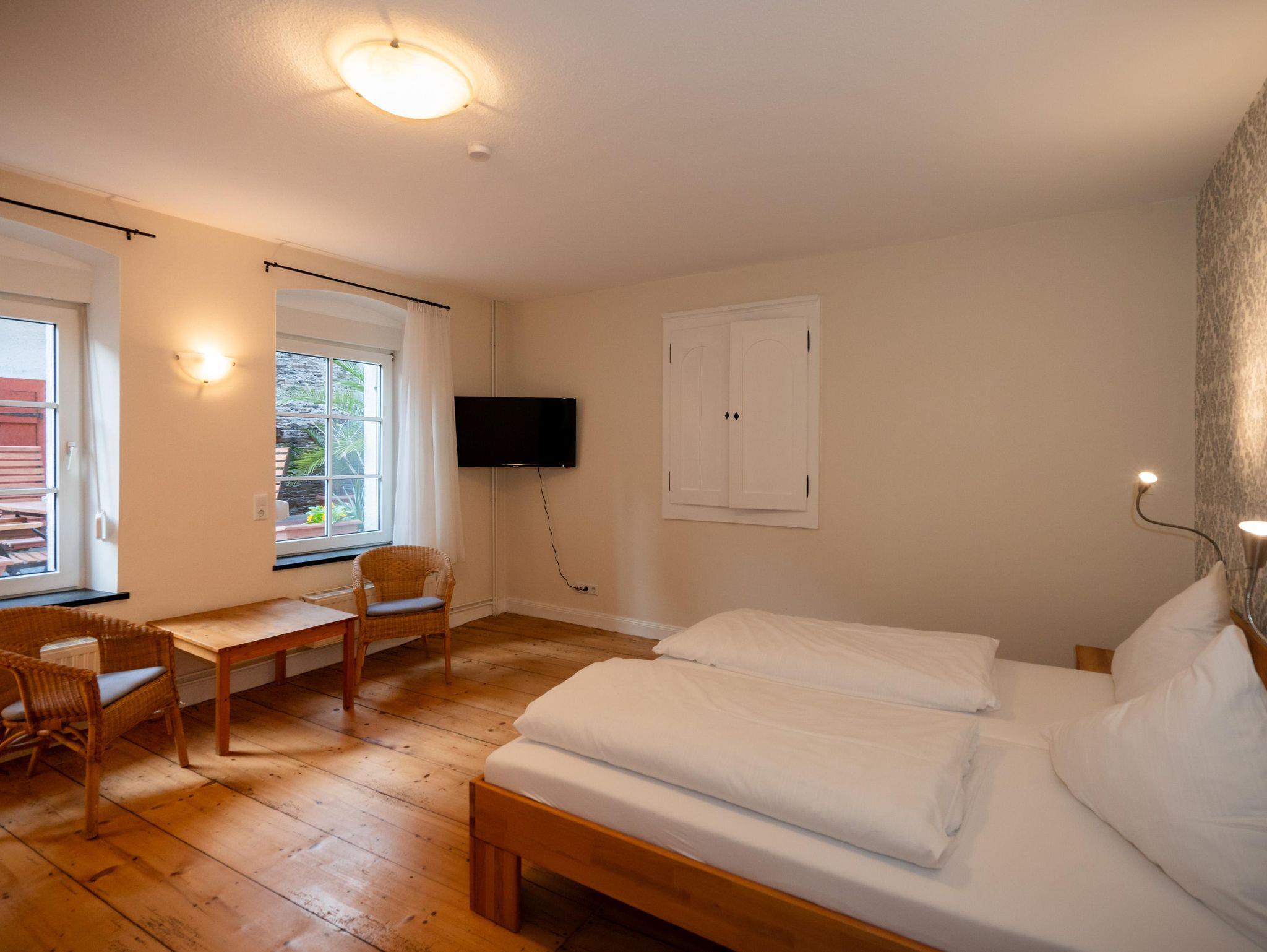 In unseren liebevoll restaurierten Apartments erwartet Sie Ruhe und Entspannung. Mit einem offenen Wohn- und Essbereich, ruhig gelegenem Schlafzimmer und einem Bad mit moderner Ausstattung fällt es leicht die Seele baumeln zu lassen. Zudem bietet ein Balkon oder unsere große idyllische Terrasse Gelegenheit die Sonnenstunden auszunutzen, sich sportlich zu betätigen z.B. beim Tischtennis spielen, oder in geselliger Runde zu Grillen und das leckere Essen zu genießen. Unsere gemütlichen Liegestühle laden dazu ein, z. B. bei einem unterhaltsamen Buch oder spannender Lektüre eine Zeit lang zu verweilen. Bei all dem dürfen unsere beliebten Weine nicht fehlen, die in jeder Ferienwohnung bereit stehen und nur darauf warten zu dem einen oder anderen Anlass getrunken zu werden, denn: