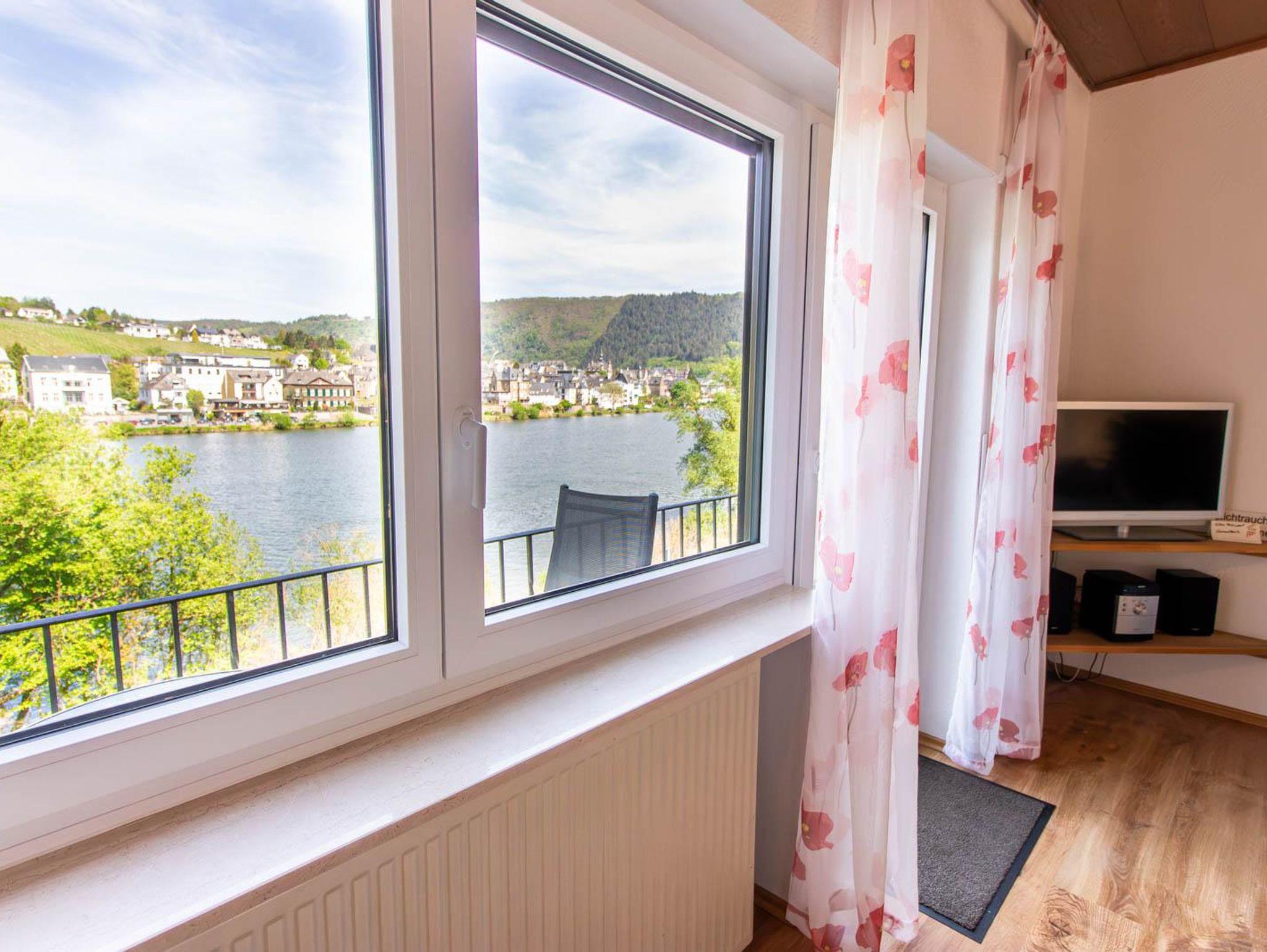 35 m² Wohnung mit Balkon zur Mosel. Wohn-Schlafraum mit Doppel-Schrankbett, Kochnische, SAT-TV, Badezimmer mit Dusche/WC.