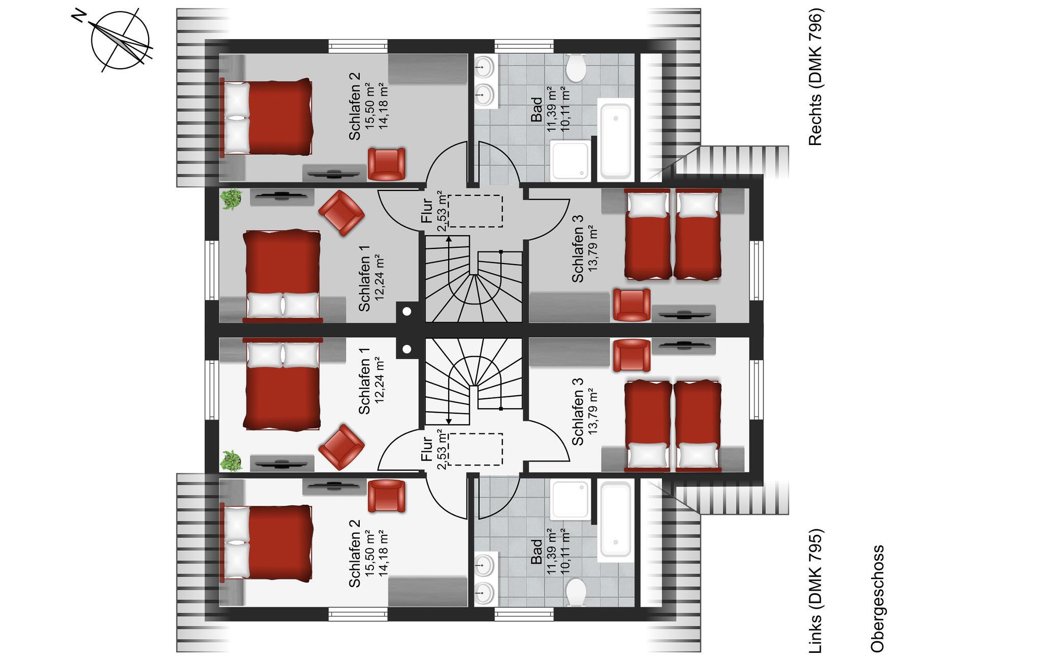 Soveværelse 15m2 (nr. 1) - 2 Sovepladser. (Dobbeltseng(e)).