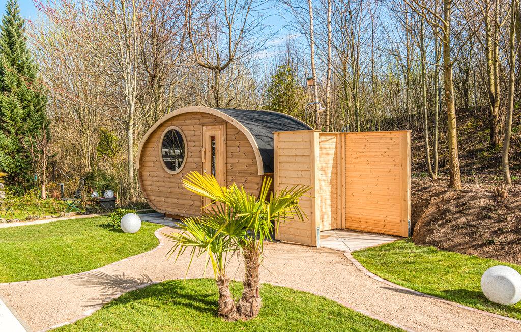 Sæt jer ned på terrassen og nyd kvalitetstid udendørs, mens jeres børn leger sprudlende på græsplænen. Der er et flytbart havehegn.