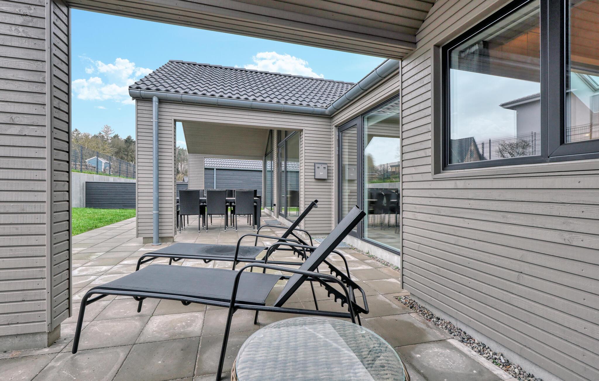 Nyd solen på den rummelige terrasse, mens børnene hygger sig i haven. På varme sommerdage er altanen med havemøbler et vidunderligt sted at slappe af. Her kan I få en afslappet morgenmad eller grille om aftenen og nyde freden og roen. Der er også en legeplads på stedet, som giver variation for de små gæster.