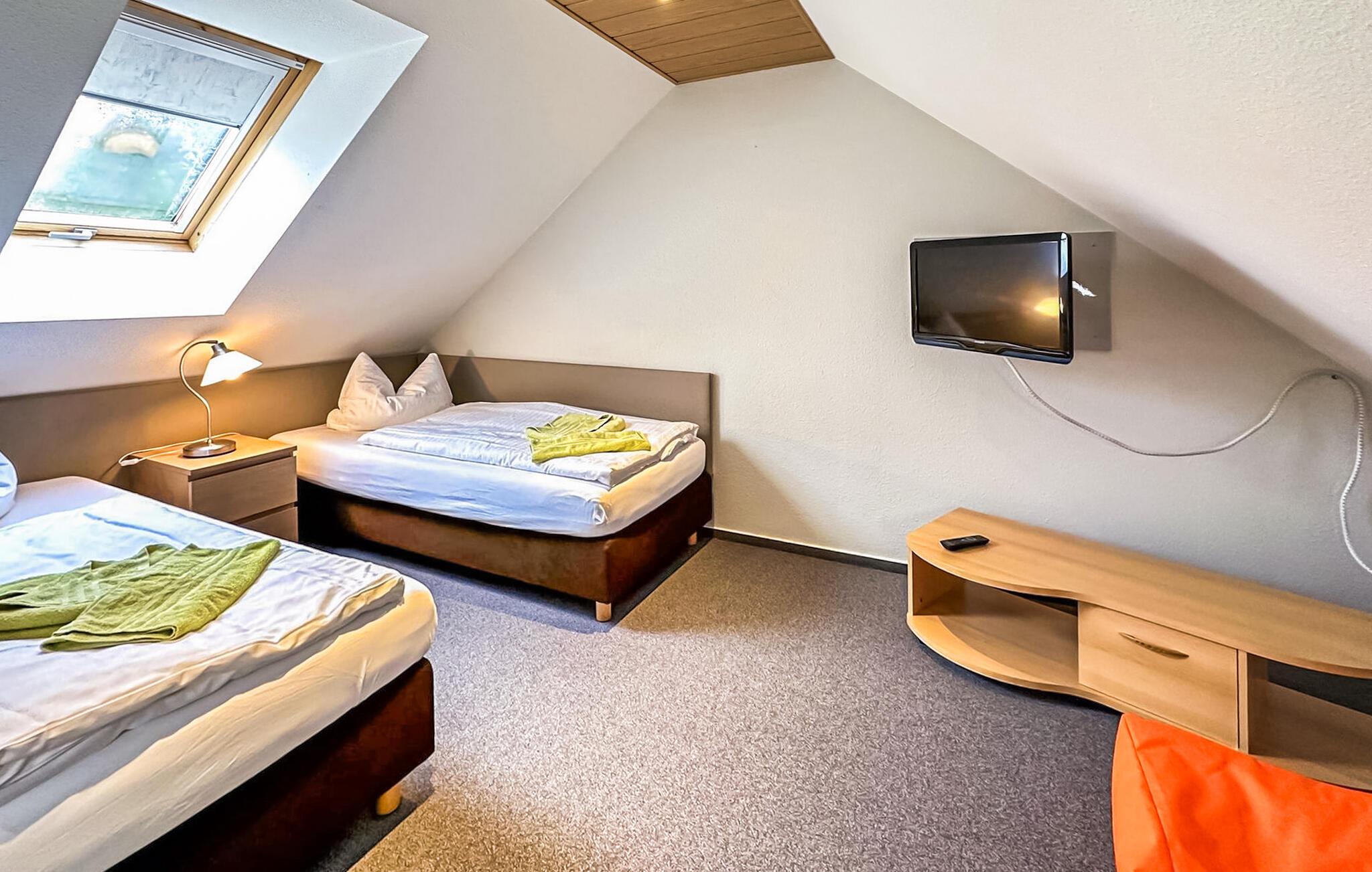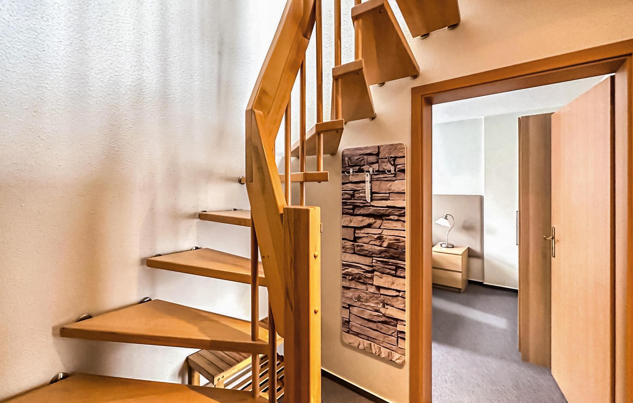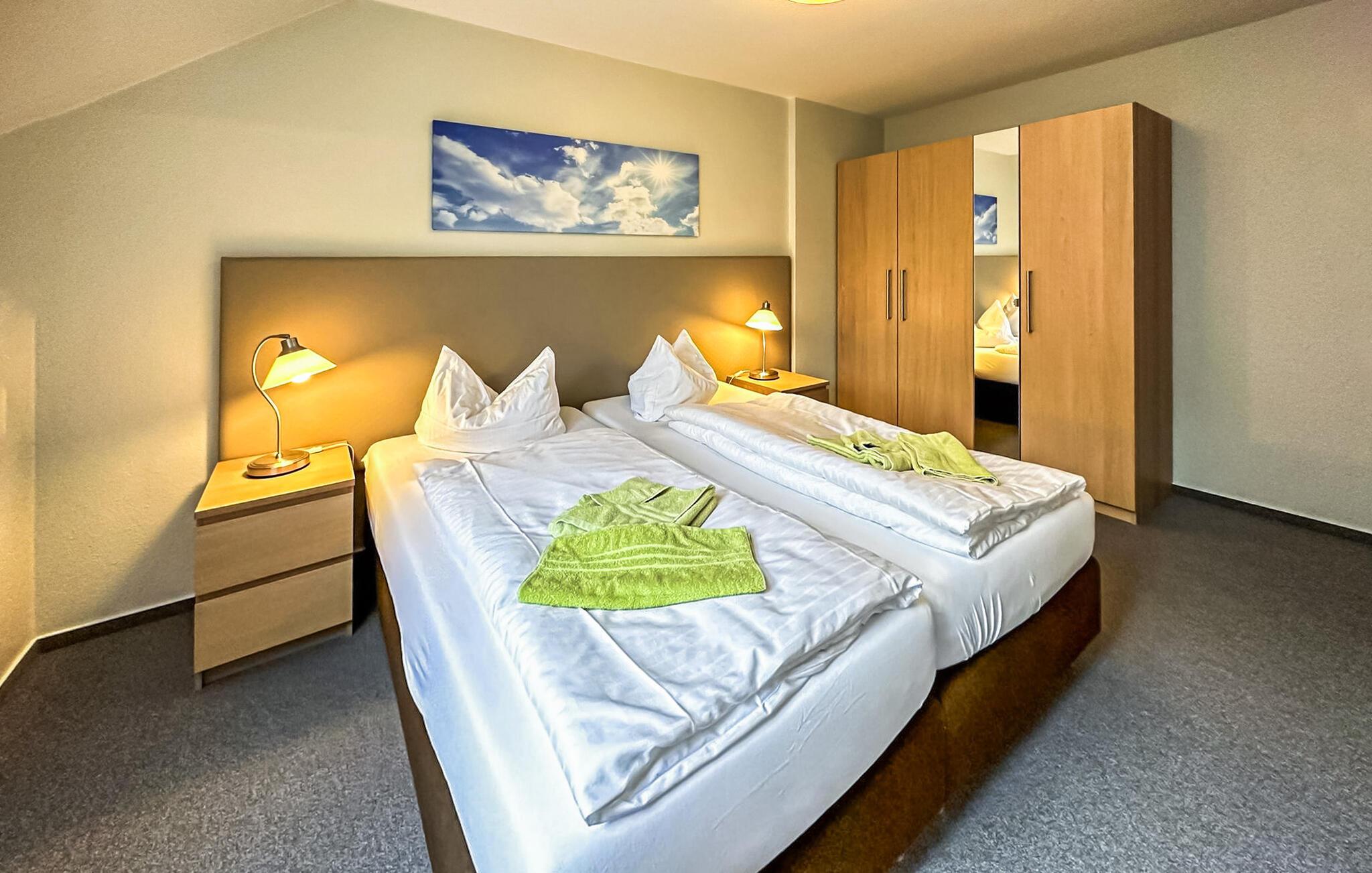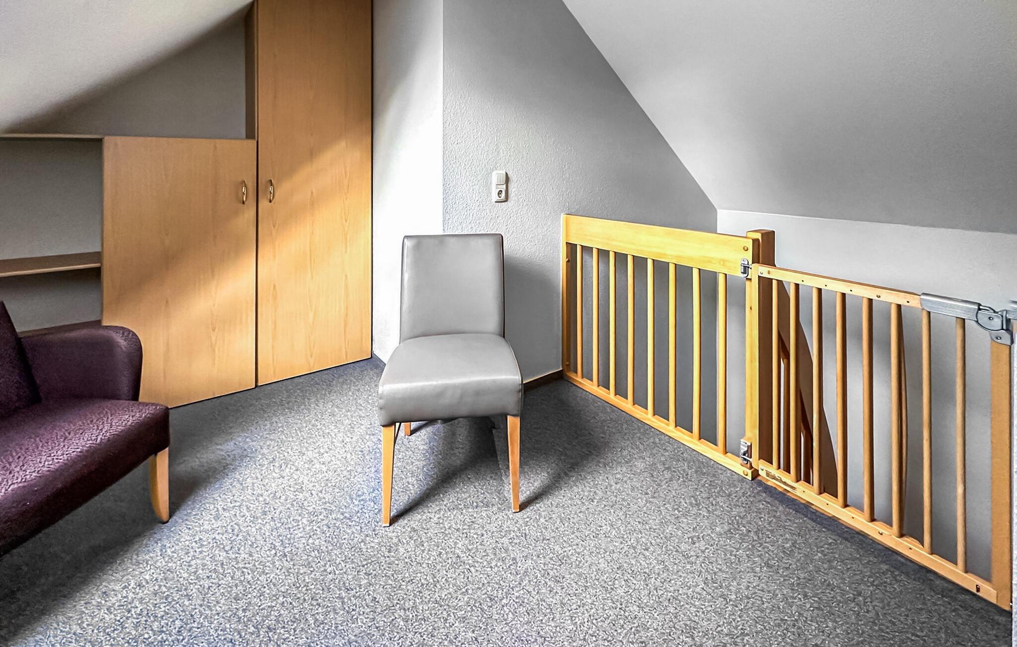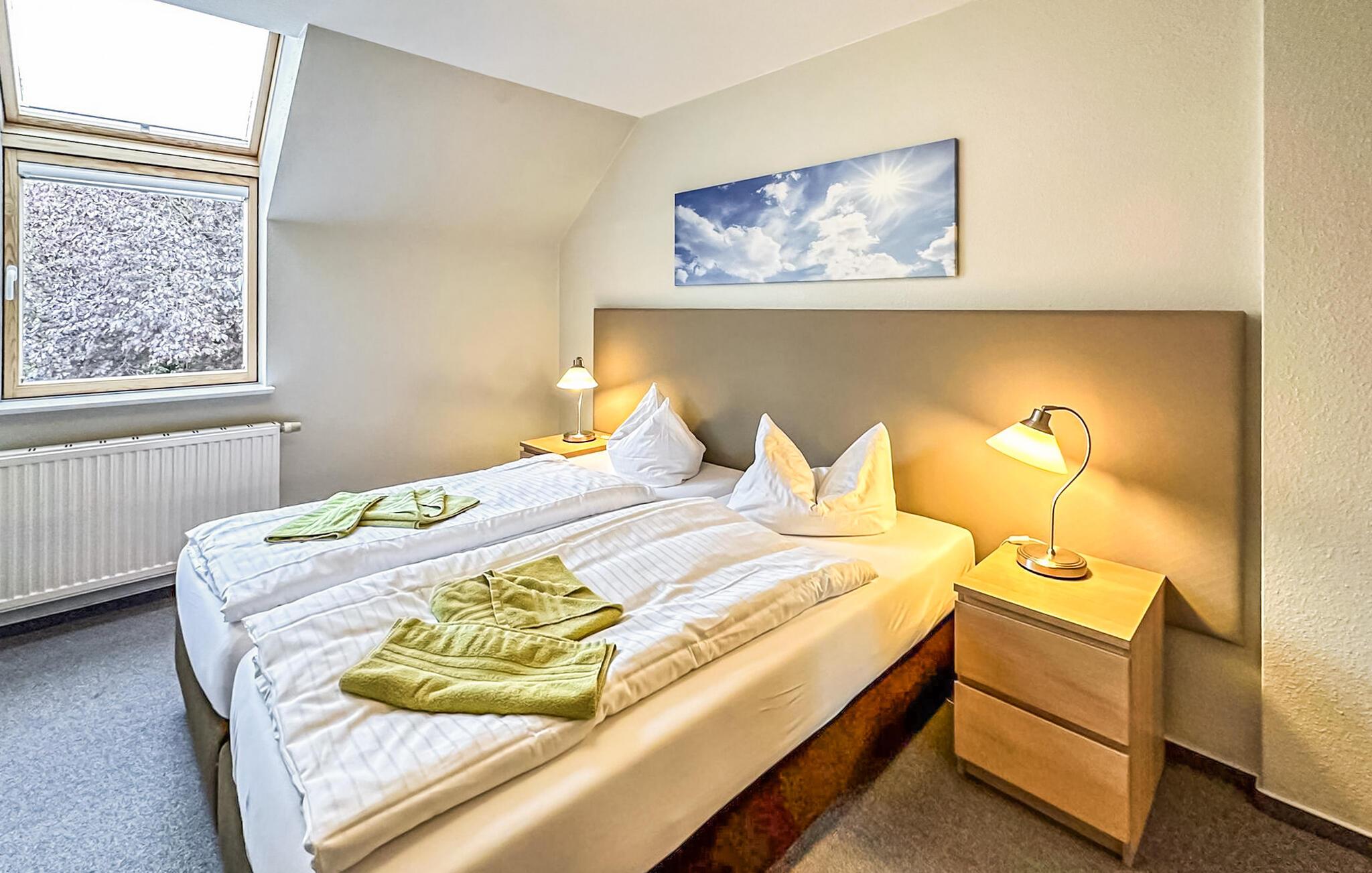 De fire ikke-ryger ferielejligheder ligger i et feriehus på en grund på cirka 1.400 kvadratmeter centralt i Østersøferiestedet Trassenheide. Der er omkring 1,6 km til Østersøstranden. Butikker, restauranter og caféer er inden for få hundrede meter.Alle lejligheder blev omfattende moderniseret og nyindrettet i 2020. 3-værelses lejligheden på 62 kvadratmeter til 4 personer ligger på øverste eller loftsetage og kan nås via en central trappe. Det har en stue med spisebord og åbent tekøkken (polstrede møbler, fladskærms-tv, spisebord, el-komfur, ovn, køleskab med fryser, mikroovn, forskellige køkkenmaskiner), et badeværelse med bruser/toilet og et soveværelse med dobbeltseng (adgangsrum til badeværelset). En pladsbesparende trappe fører til endnu en stue/soveplads med 2 enkeltsenge, tv og siddepladser. Der er også en møbleret balkon. En barneseng og høj stol kan stilles til rådighed for små børn. WiFi er også tilgængeligt. Til hver lejlighed på ejendommen er der en parkeringsplads, cykelstativer og en central grillplads på naboejendommen. Den samlede pris inkluderer slutrengøring, sengelinned, håndklæder samt vand- og energiforbrug. I feriestedet Trassenheide ved Østersøen er feriegæster forpligtet til at betale en spaskat (betales kontant på stedet). Trassenheide, badebyen i den nordlige del af øen Usedom, er kendetegnet ved sin fine sandstrand. Nudist- og hundebadestrand i nærheden. Stedet er forbundet med øens cykelnet. Begivenheder og koncerter finder sted på promenaden om sommeren.