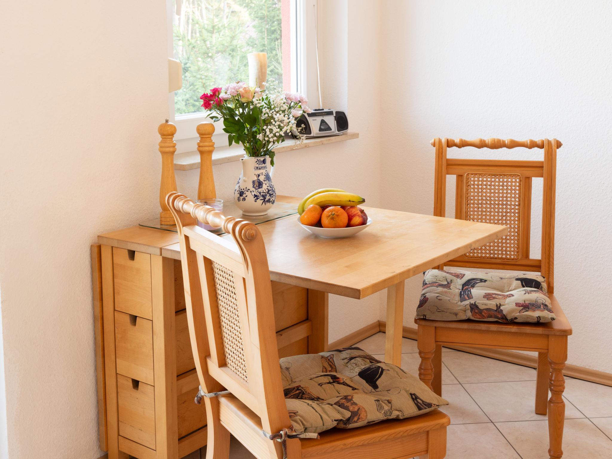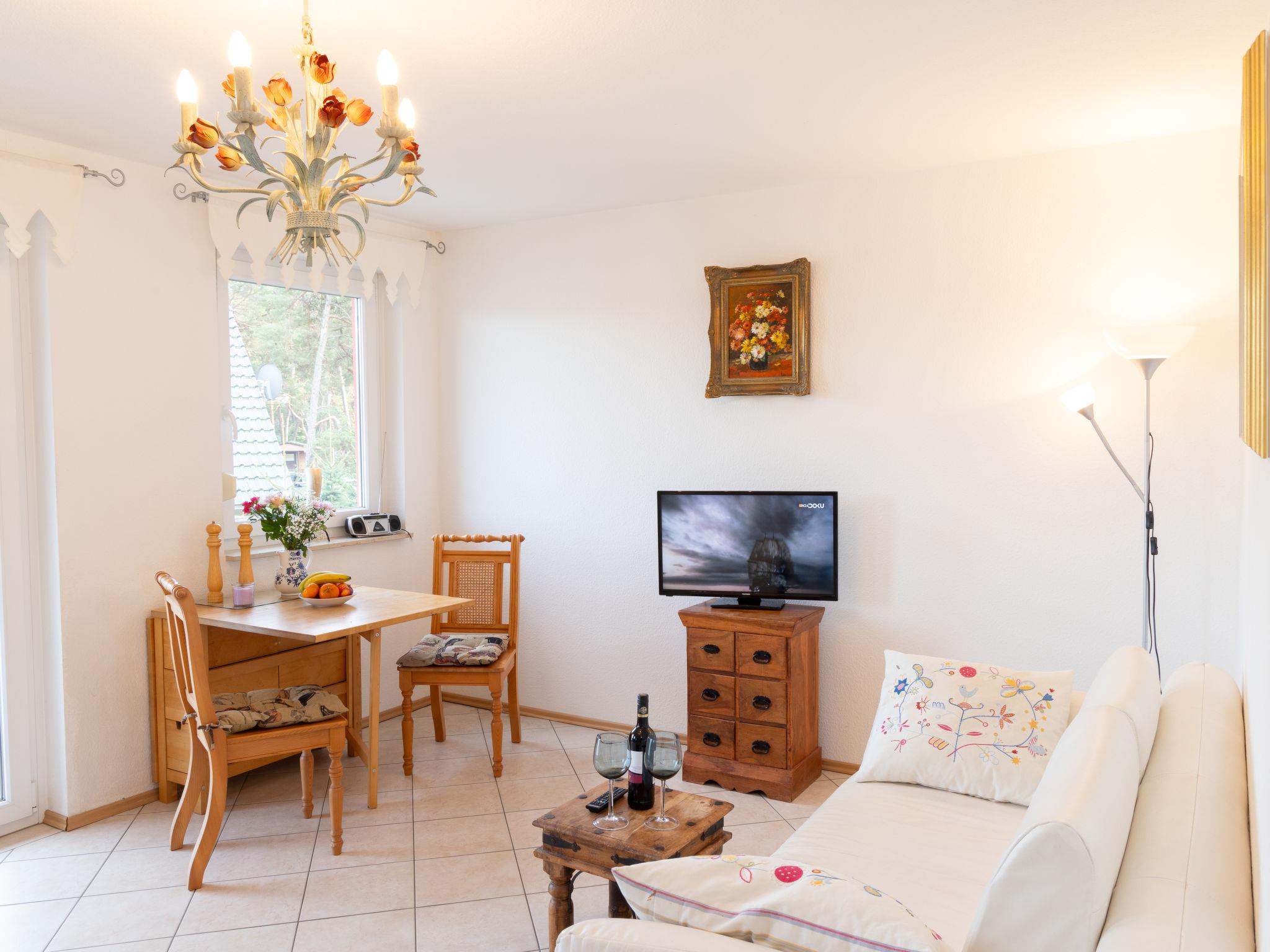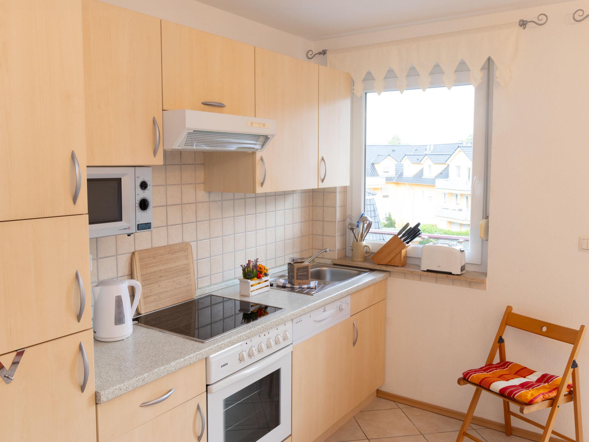 "Seerose", 2-room apartment 45 m2 on 1st floor. Living/dining room with cable TV (flat screen), radio. Exit to the balcony. 1 room with sloping ceilings with 1 double bed. Kitchenette (dishwasher, 4 ceramic glass hob hotplates, toaster, kettle, microwave, electric coffee machine). Shower/WC. Balcony. Balcony furniture. Facilities: children's high chair, baby cot. Parking (1 car) at the house. Please note: non-smokers only. Smoke alarm.