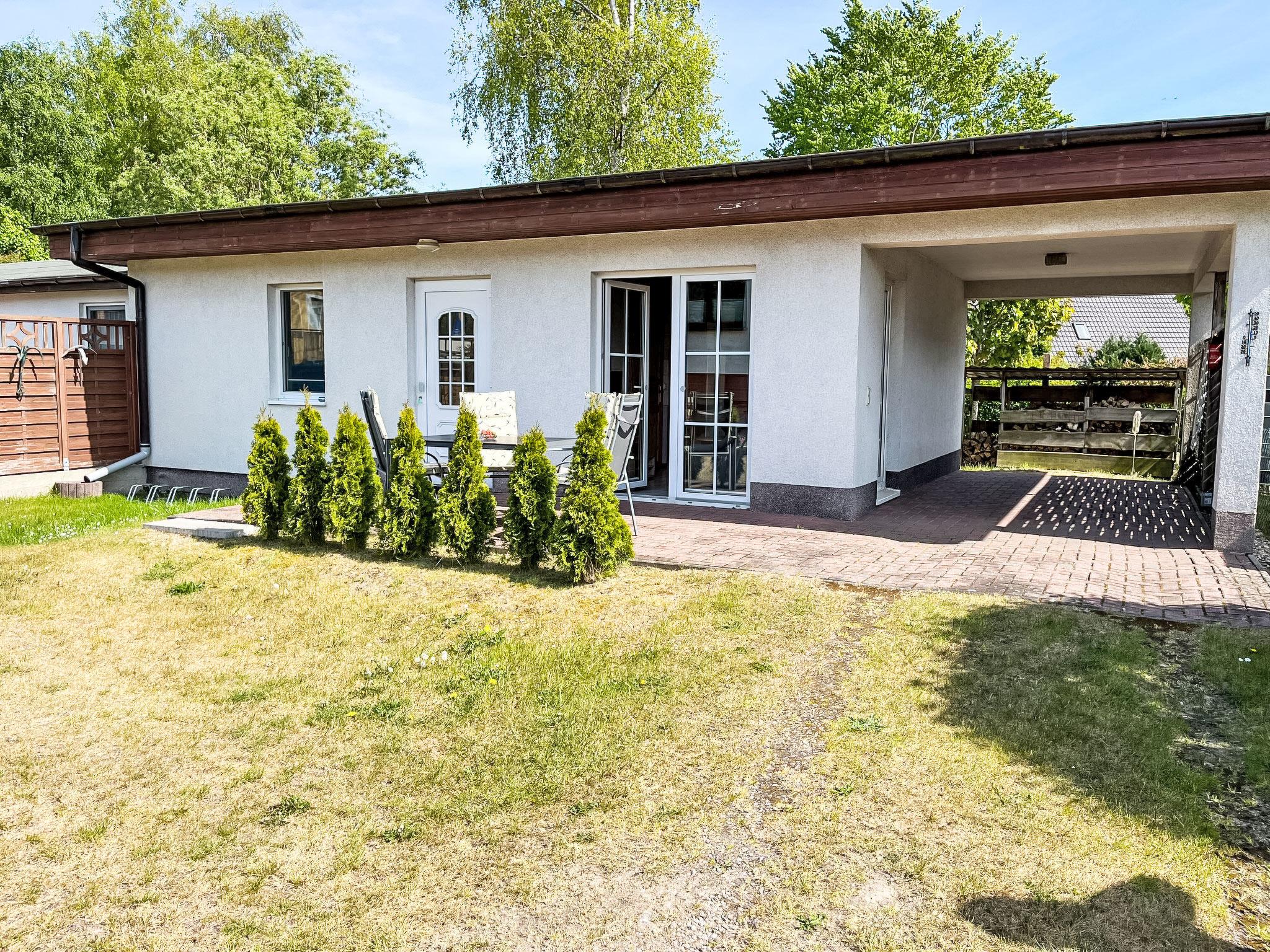 Trassenheide: Cosy bungalow. On the outskirts, 2 km from the sea, 2 km from the beach. Supermarket 300 m, restaurant 350 m, bakery, café 300 m, bicycle rental 700 m, bus stop 500 m, railway station 1.5 km.