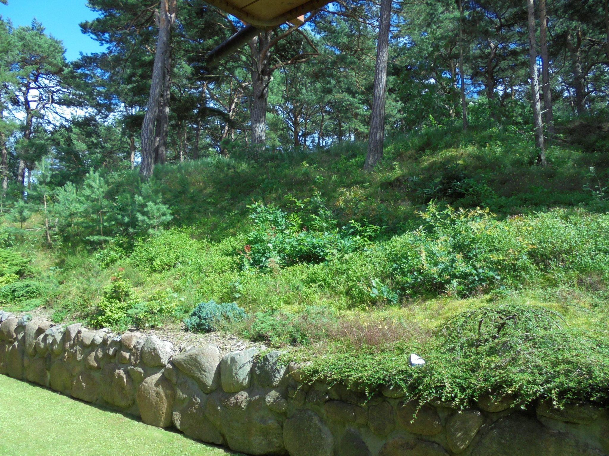 It has a little terrace for breakfast and enjoying wine, looking out towards a little elevation with trees as part of the beach dunes.