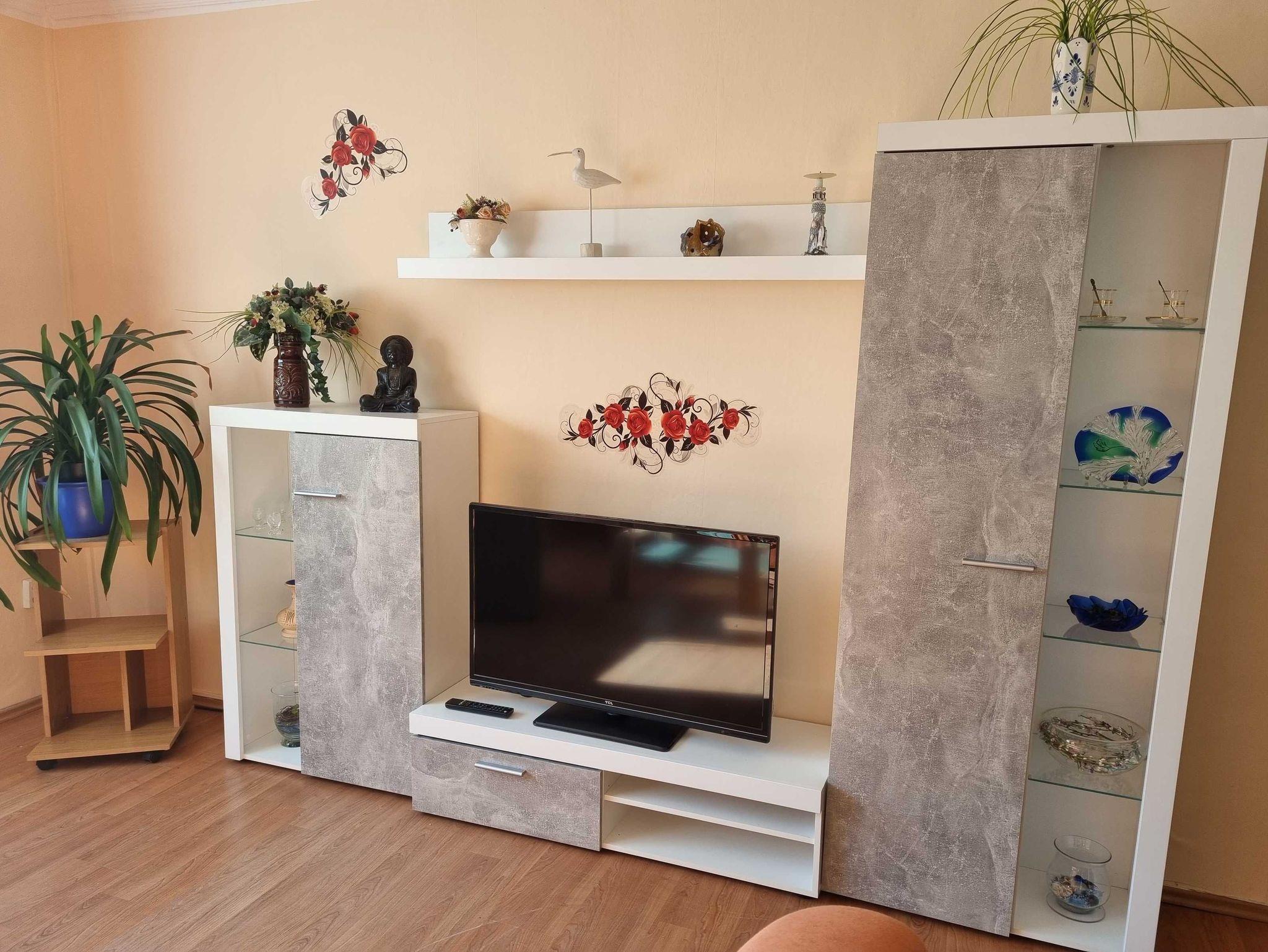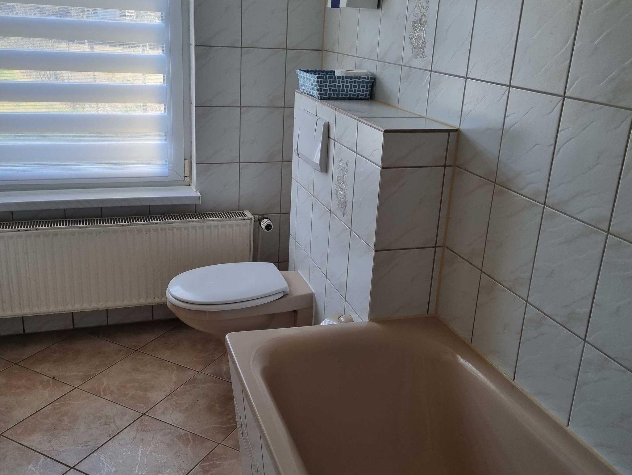 Das Ferienhaus ist mit zwei Schlafräumen, großem Wohnraum, Bad mit Badewanne, Küche mit Essecke, Herd und Backofen ausgestattet.