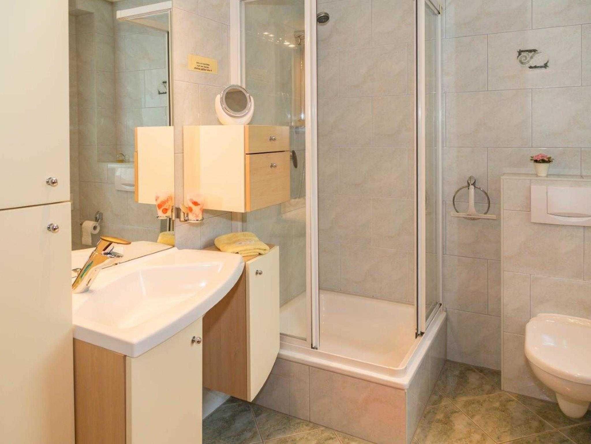 Die auf jeder Etage befindlichen Bäder mit Dusche und WC lassen bei morgendlichen Vorbereitungen für den Start in den Tag keine Wartezeit aufkommen.