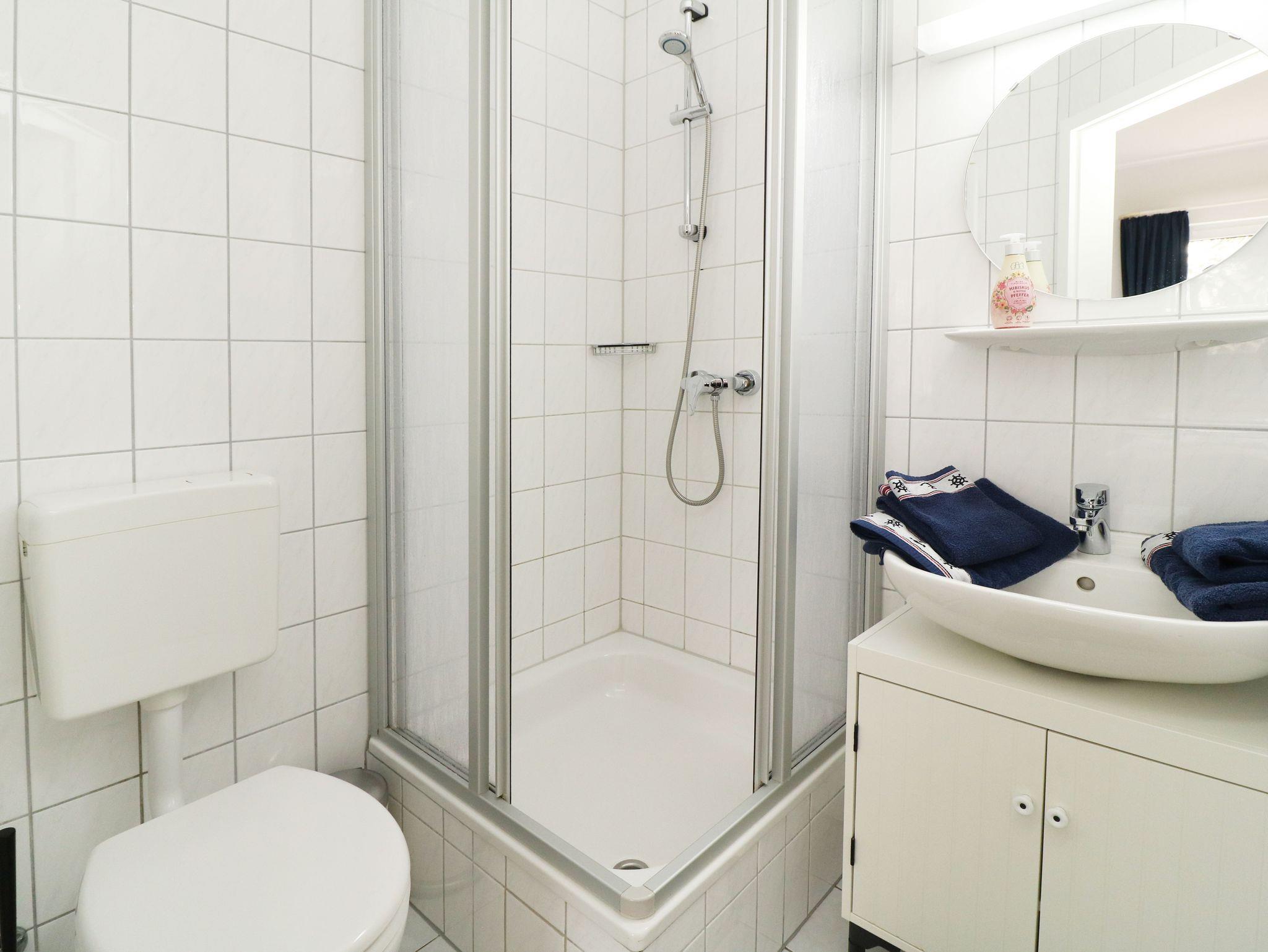 Das Bad befindet sich separat und beinhaltet Dusche und WC.