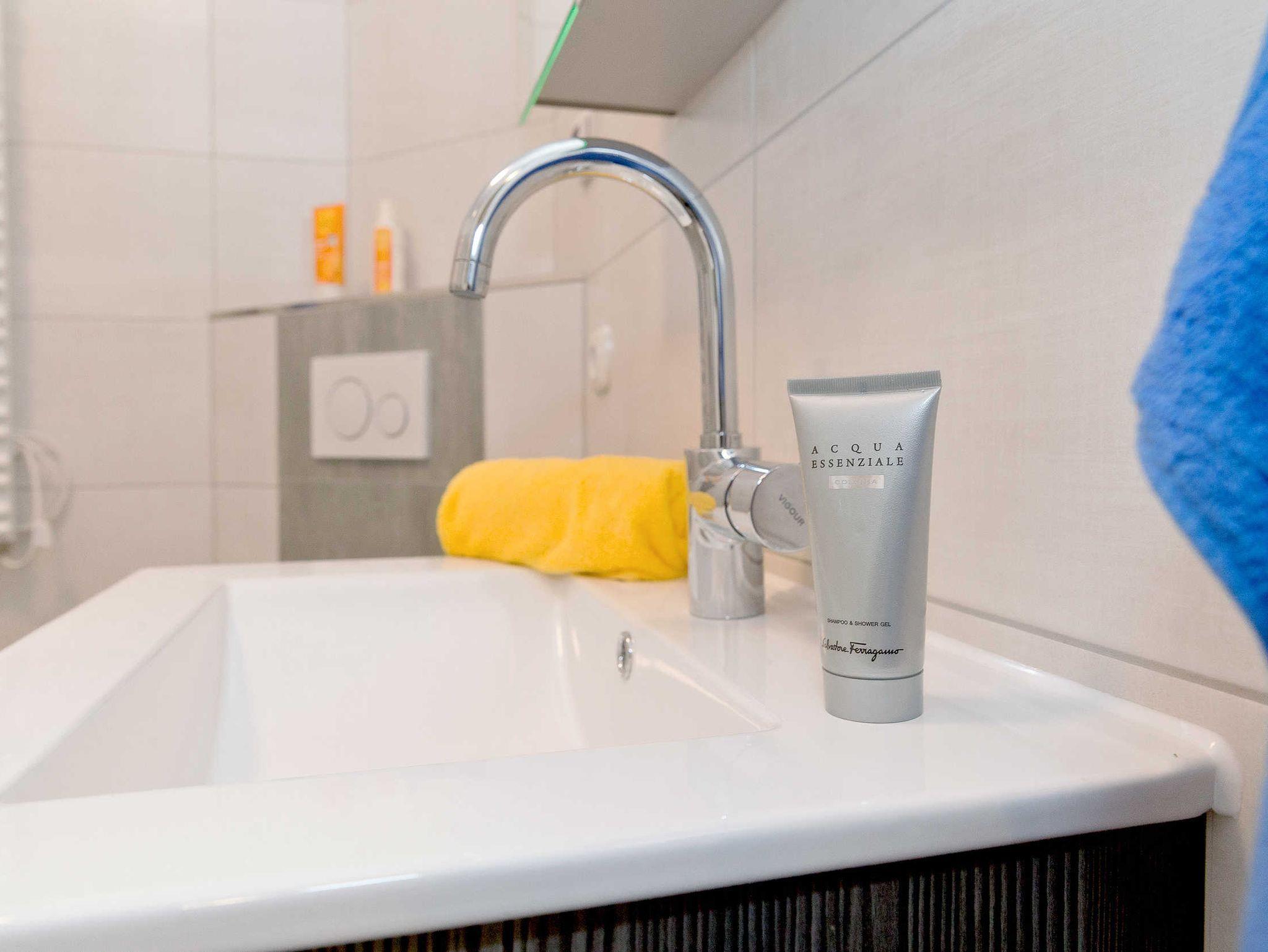 Die Wohnung hat des weiteren einen Balkon wo Sie den Morgen Ihr Frühstück draußen genießen oder Abends einfach relaxt den Sonnenuntergang beobachten können.