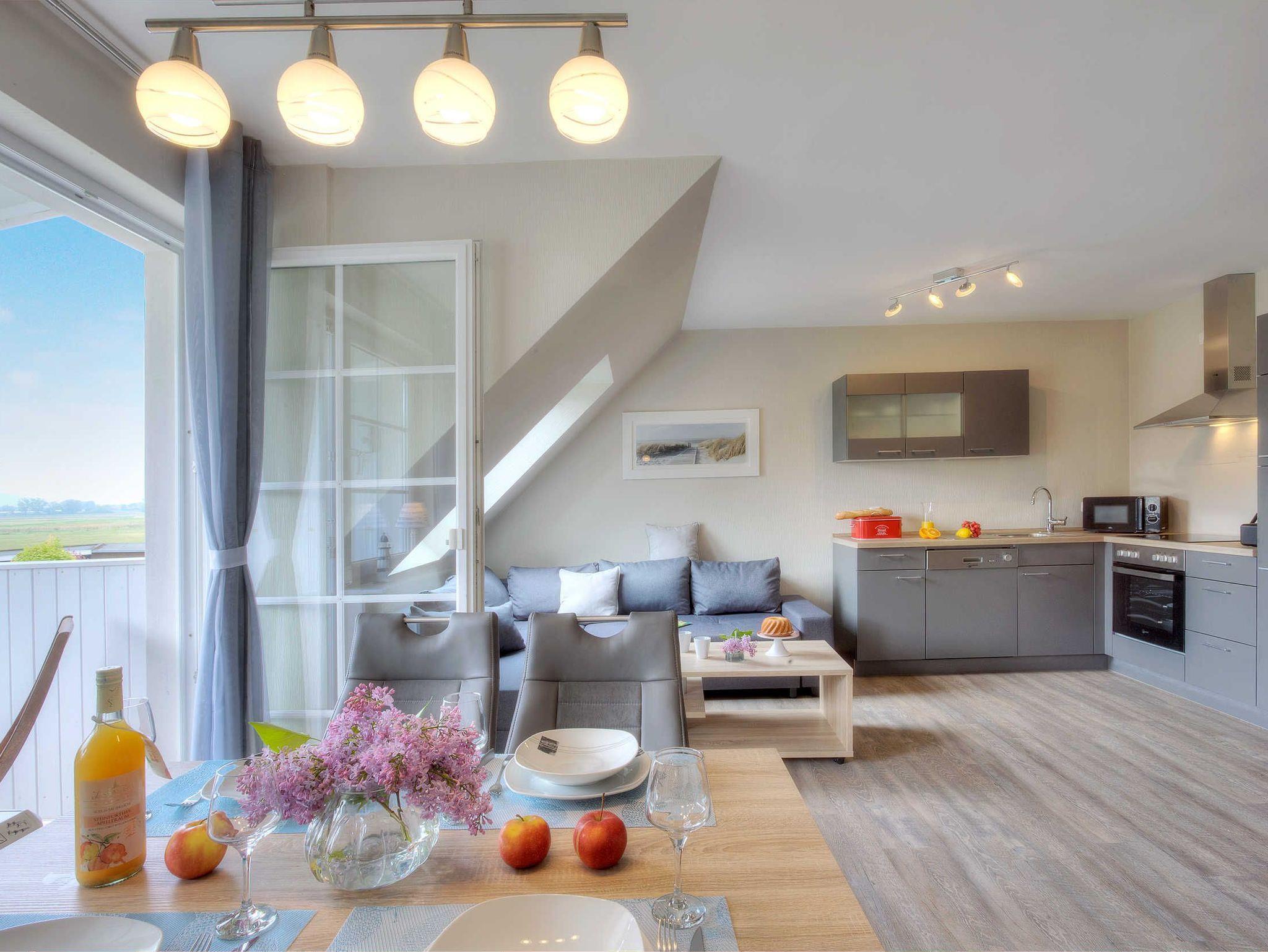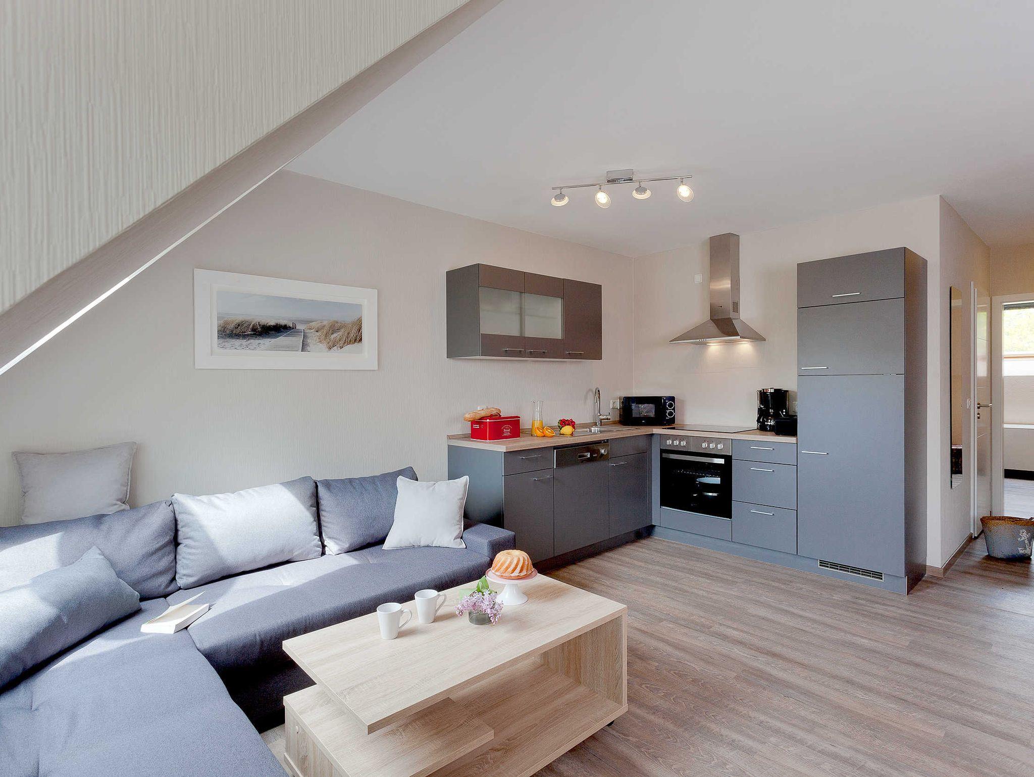 Herzlich Willkommen in der 54 m² großen Ferienwohnung. Diese bietet Ihnen all das was für Sie für einen erholsamen Urlaub benötigen. Der Wohnbereich ist mit einer offenen Küche und dem Essbereich ausgestattet. Ebenso gibt es ein Schlafzimmer mit einem Doppelbett sowie ein Badezimmer mit Dusche/WC. Bei Bedarf kann ein Kinderreisebett mit im Schlafzimmer aufgestellt werden.