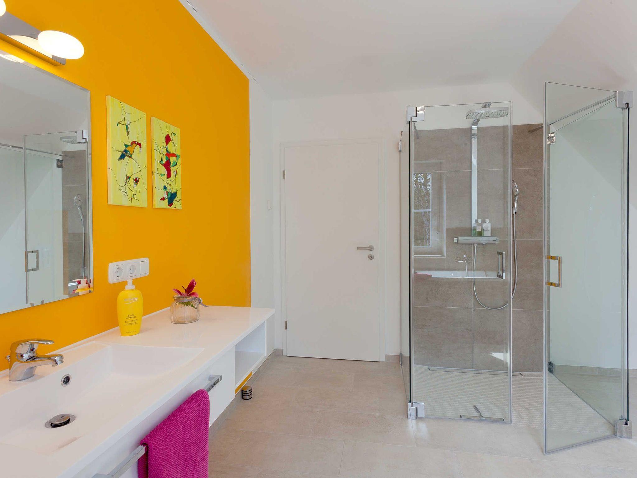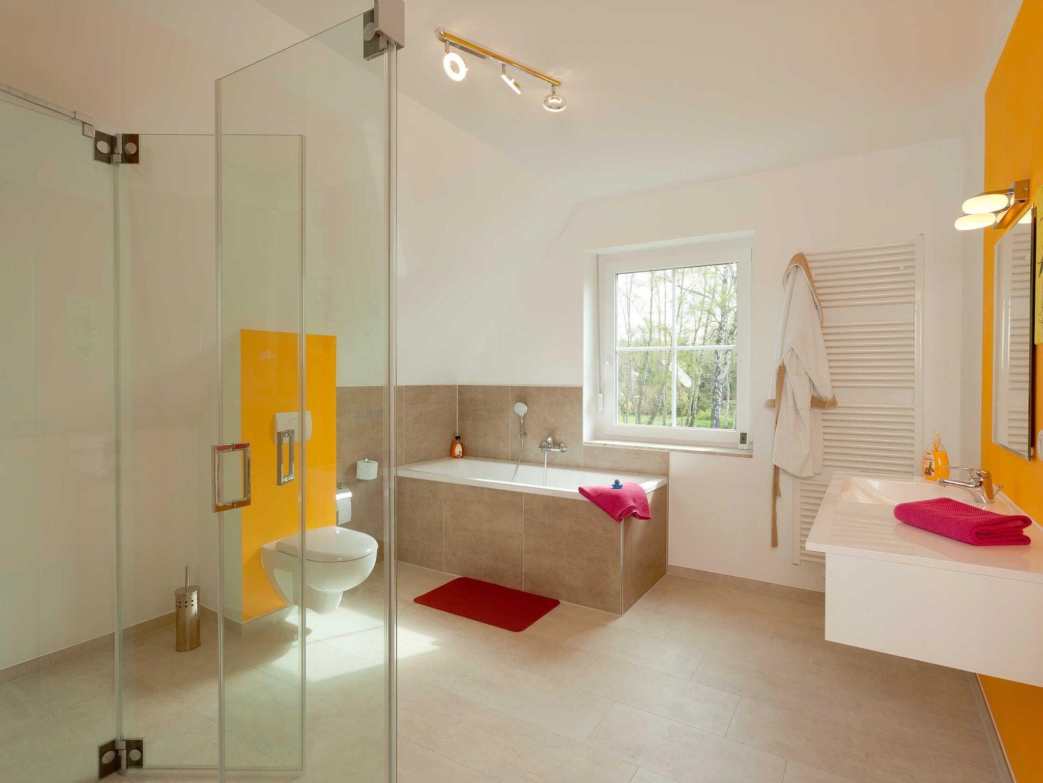 Das Bad im OG ist sehr geräumig,hell und mit gehobener Ausstattung