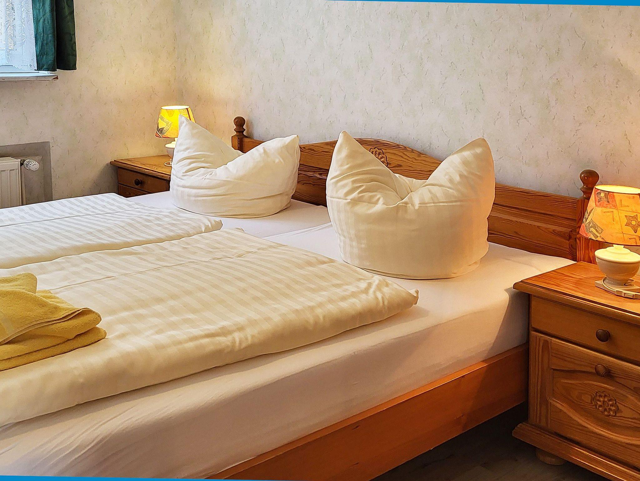 3 Raum-Wohng., 2 SZ, Küche, Wohnzimmer, Bad mit Dusche/WC, Flur, Balkon, Terrasse. Frühstücksbüfett mit Voranmeldung möglich und auch Abendessen à la carte. Haustiere nur auf Anfrage!