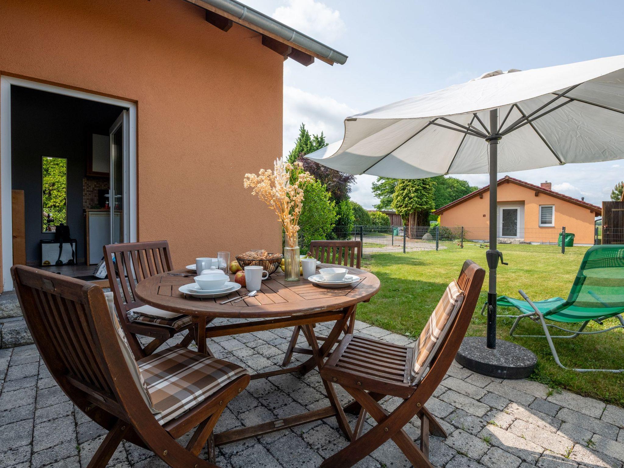 Zum Haus gehören zwei kostenfreie Parkplätze direkt am Grundstück sowie eine geschützte Terrasse mit Zugang zum Gartenbereich. Hier können Gäste ungestört entspannen oder gemeinsam grillen.