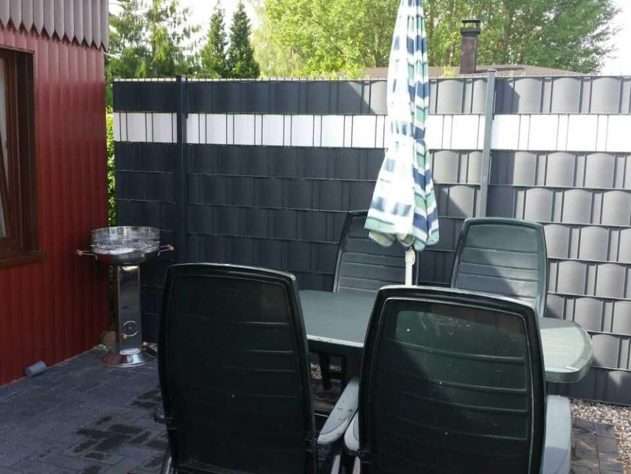 Es ist eine Außenterrasse mit Gartenbestuhlung und Grill vorhanden.